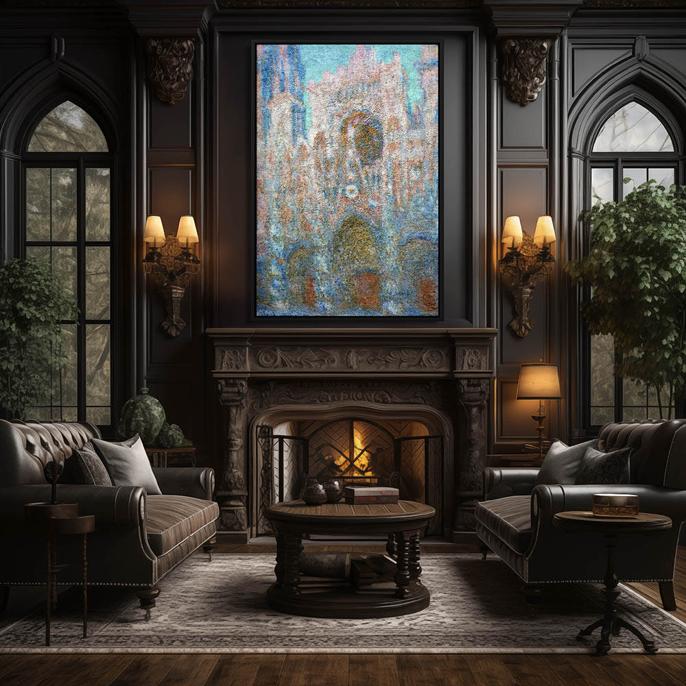 Vintage Church Painting of the Rouen Cathedral Symphony in Grey and Rose