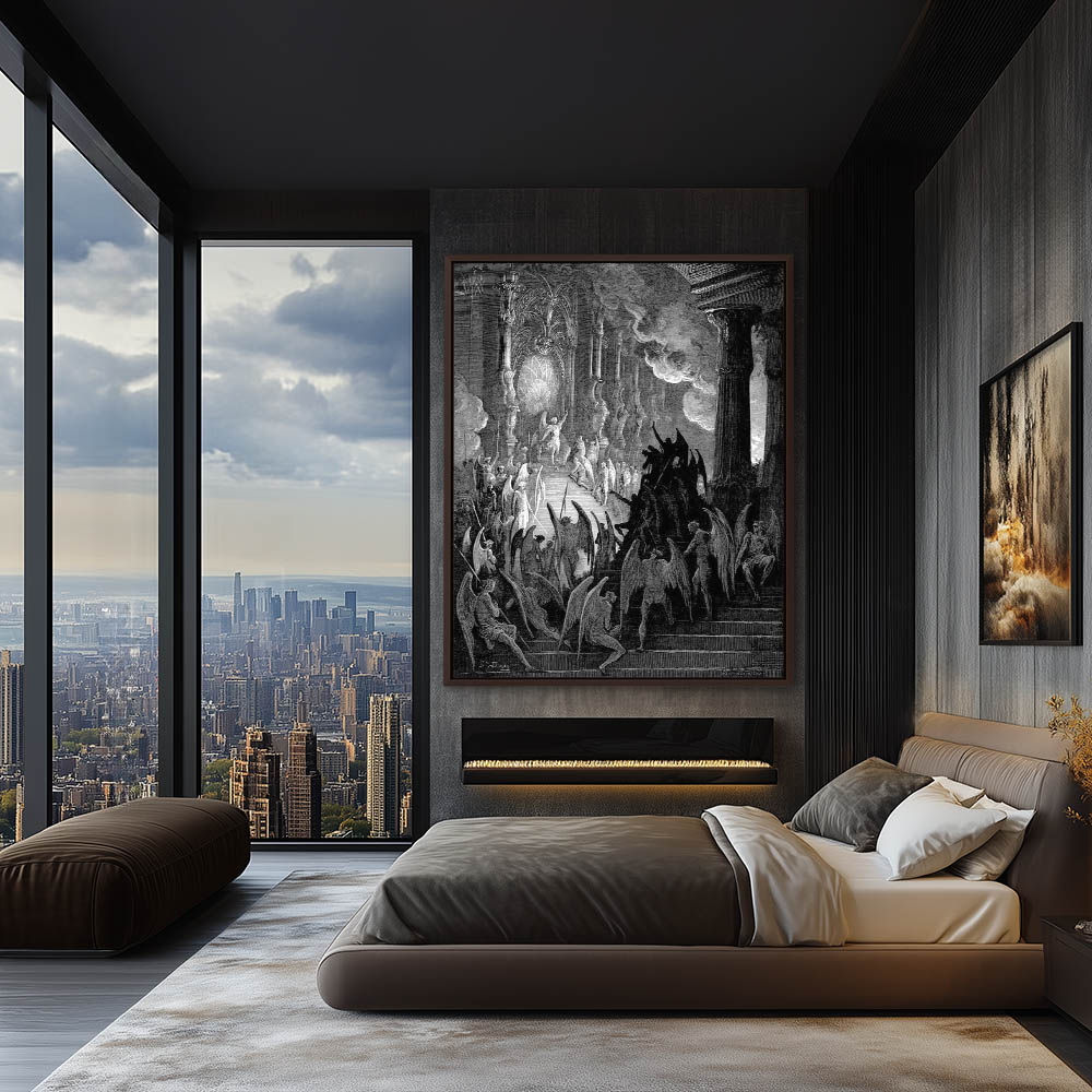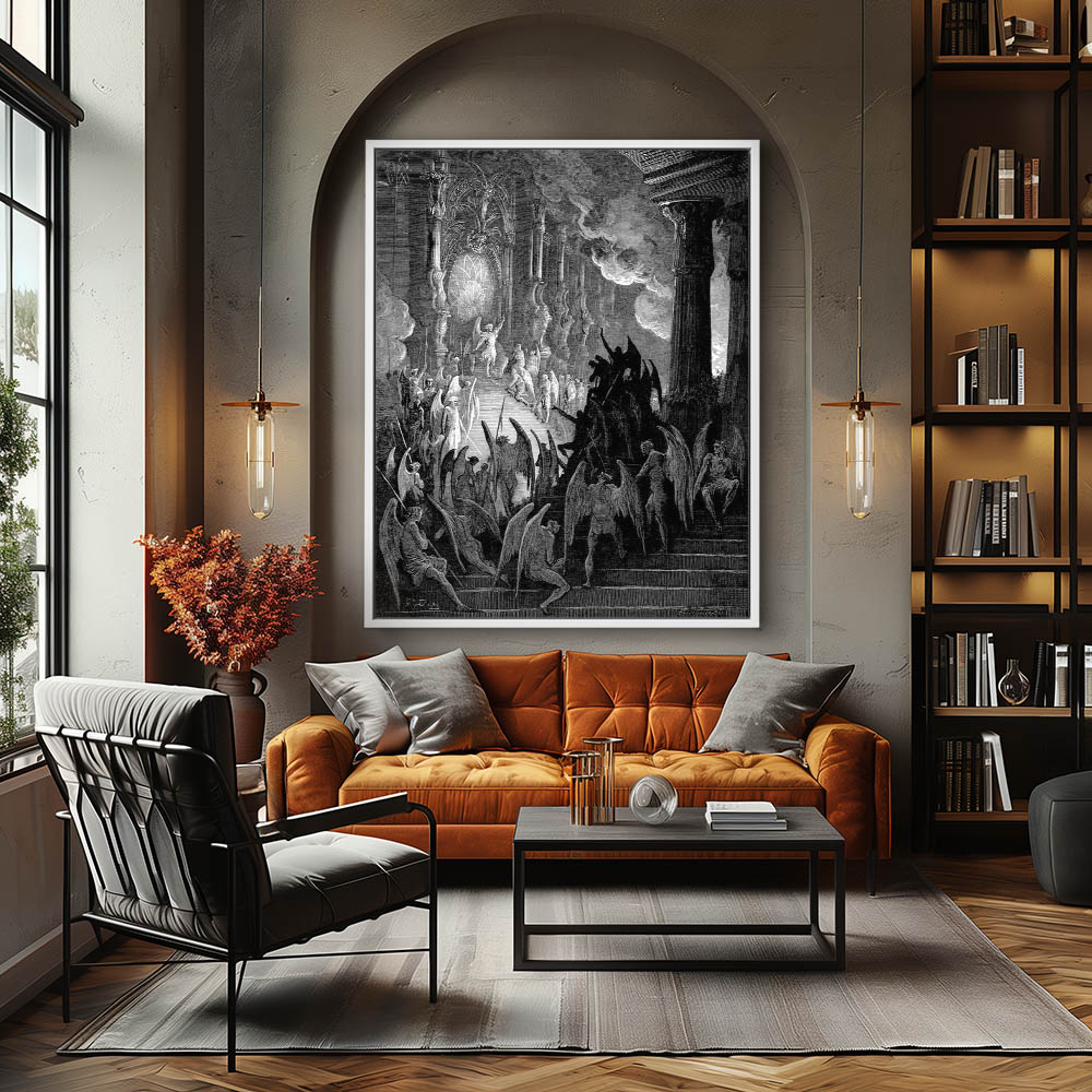 Vintage Etching of Satan in Council