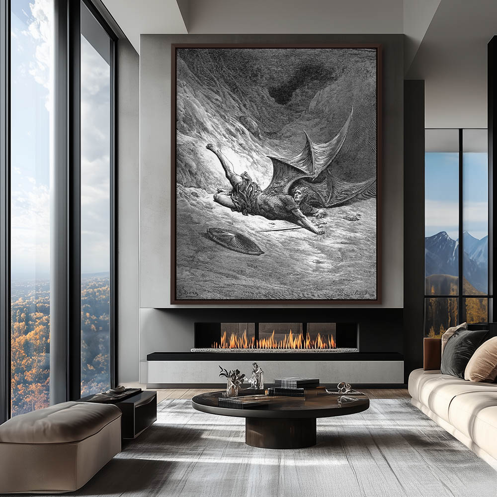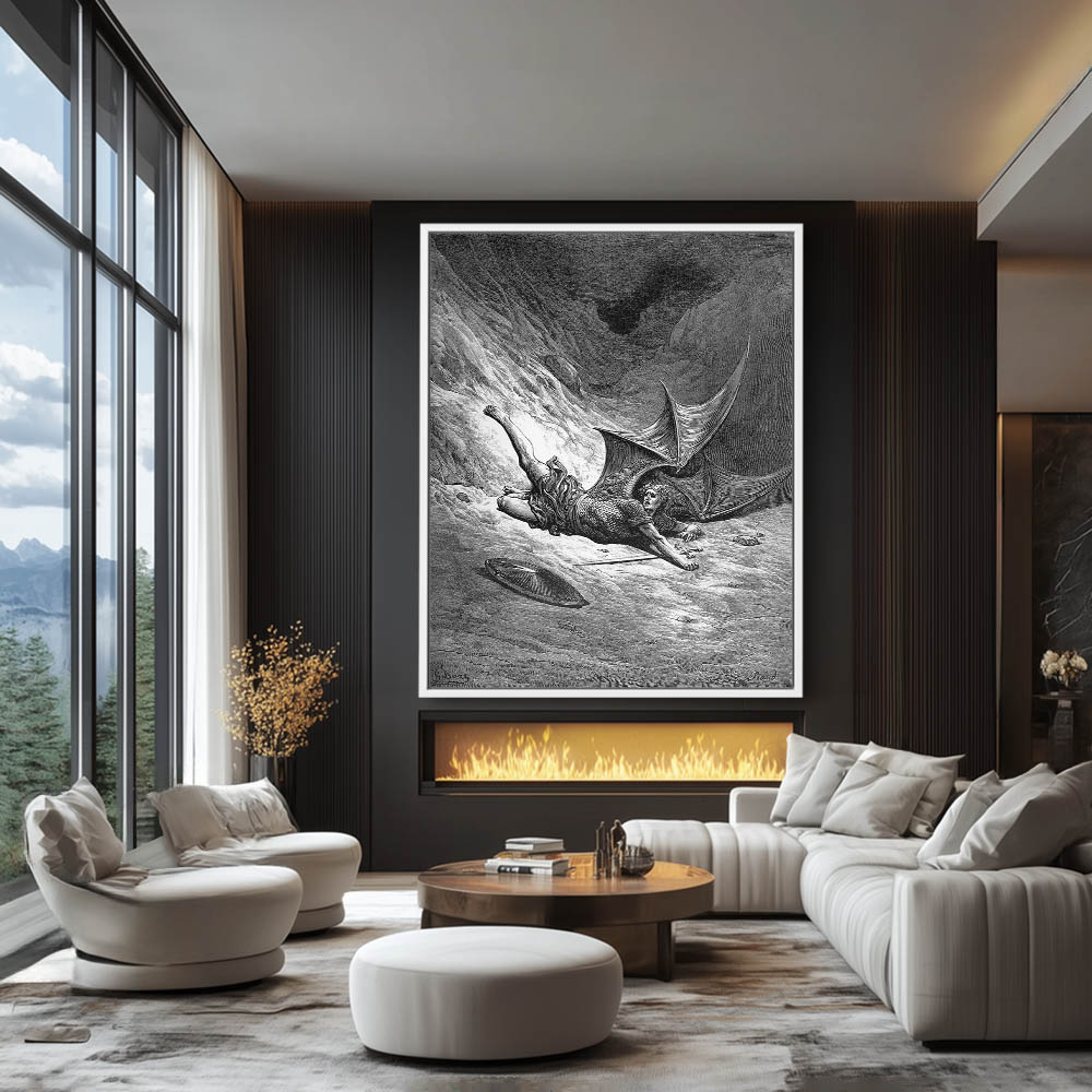 Vintage Etching of Satan Shown as the Fallen Angel