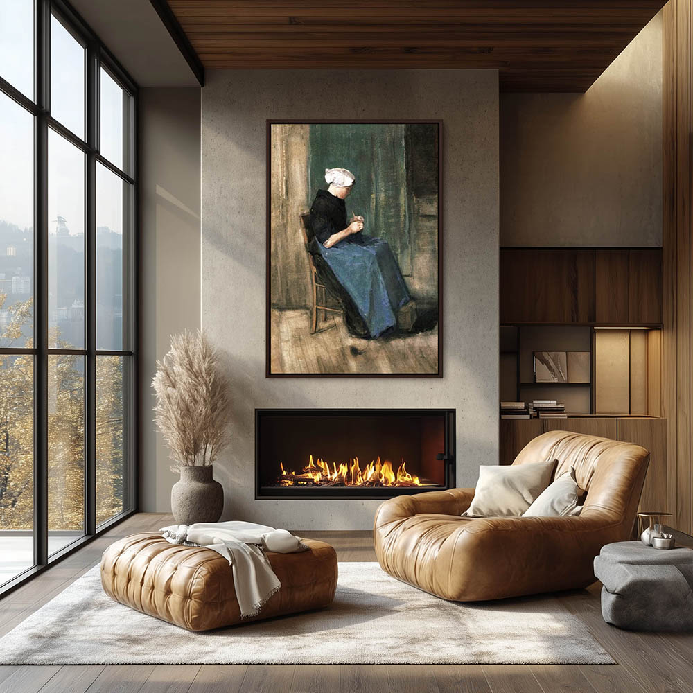Impressionist Figurative Painting of a Figure Knitting