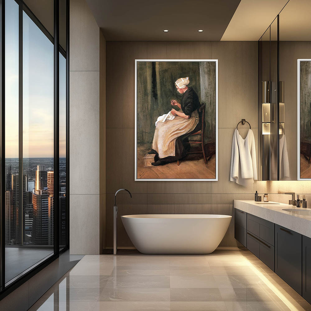 Impressionist Figurative Painting of a Figure Sewing