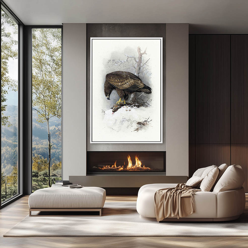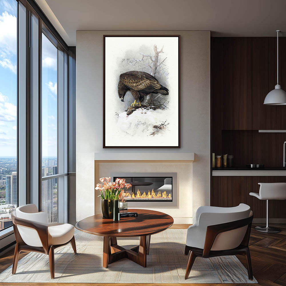 Painting of a Sea Eagle Bird of Prey with His Prey a Rabbit
