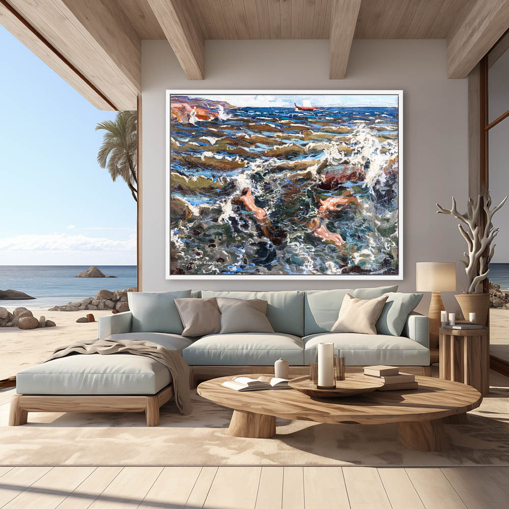Seascape Painting with Sea Nymphs in the Water