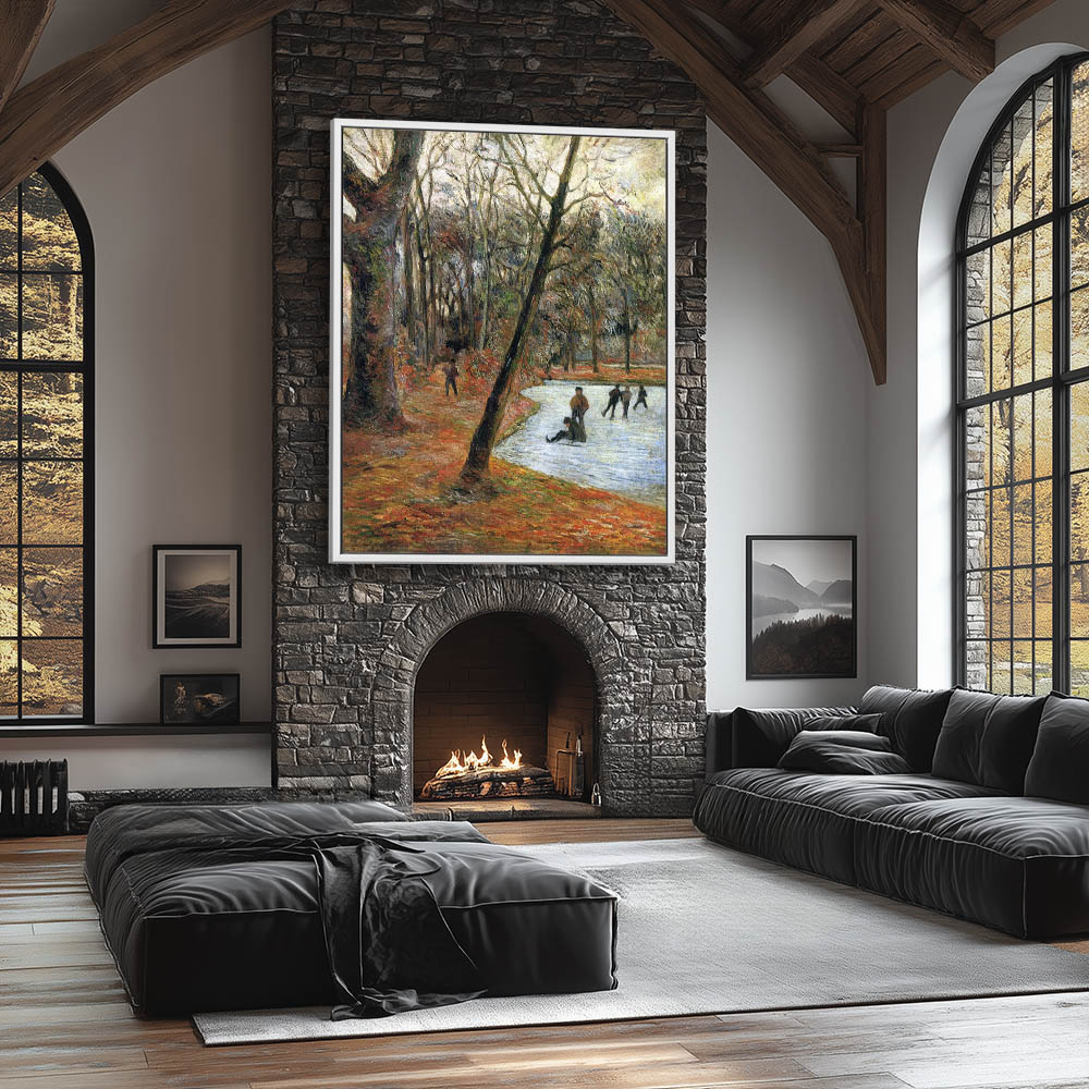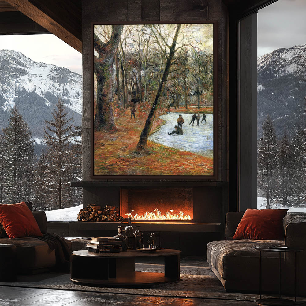 Landscape Painting with Skaters on a Frozen Pond In a Park