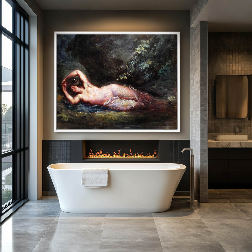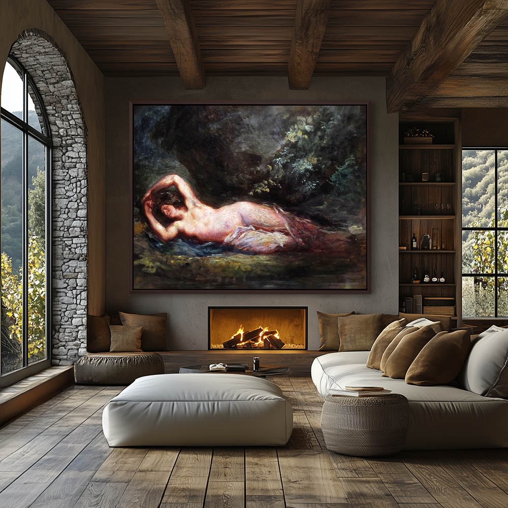 Vintage Figurative Painting of the Sleeping Nude Bacchante