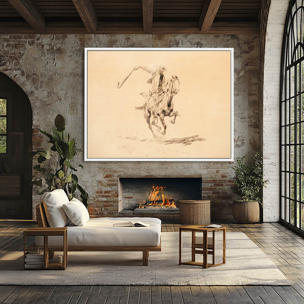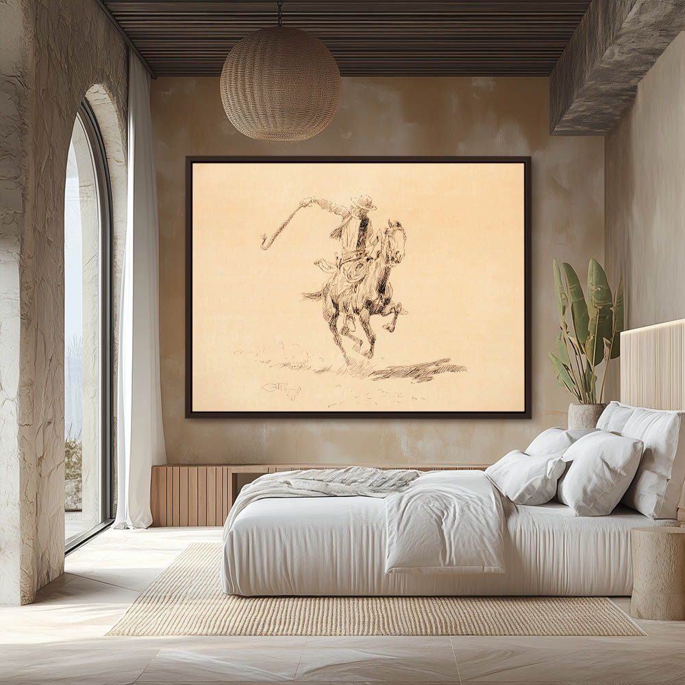 Sketch of a Cowboy on horseback slinging a rattlesnake by the tail