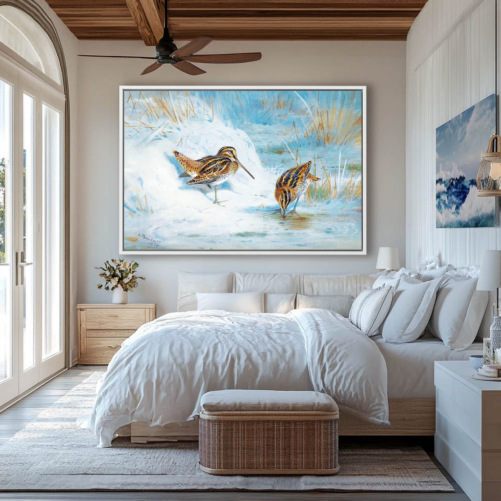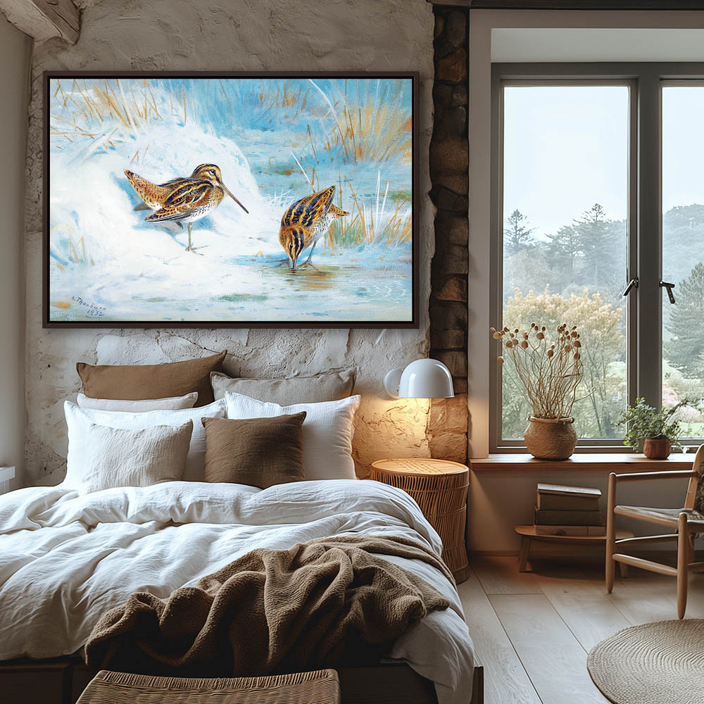 Painting of Two Snipe in the Grass in Winter