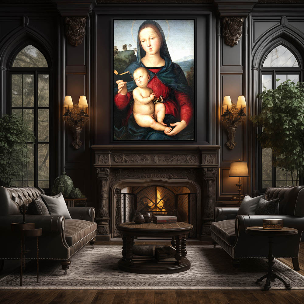 Vintage Religious Painting of The Virgin and Child