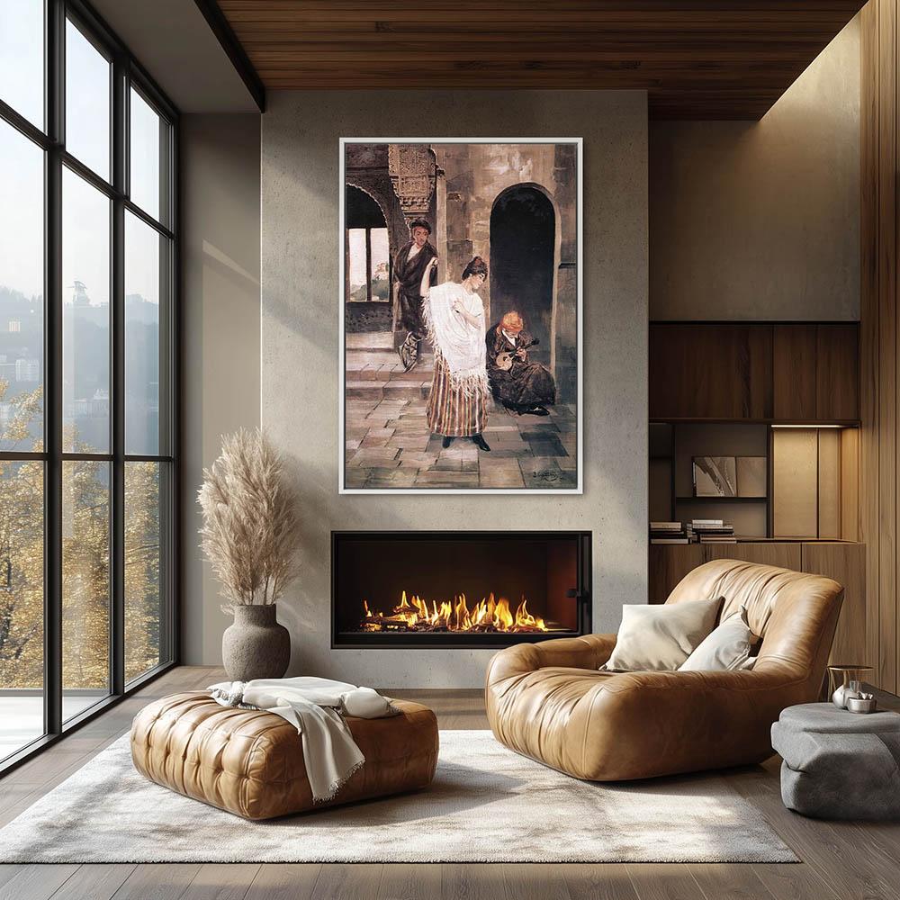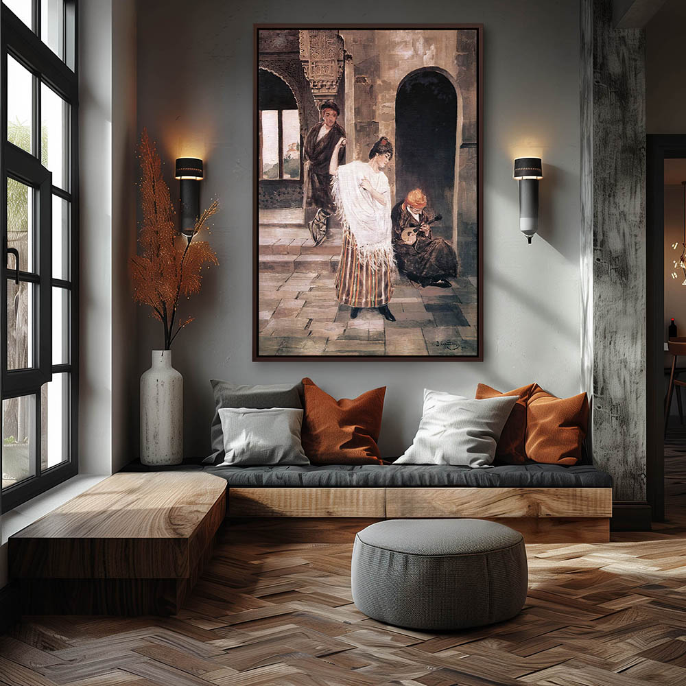 Figurative Painting of a Spanish Dancer with a Man Playing the Mandolin