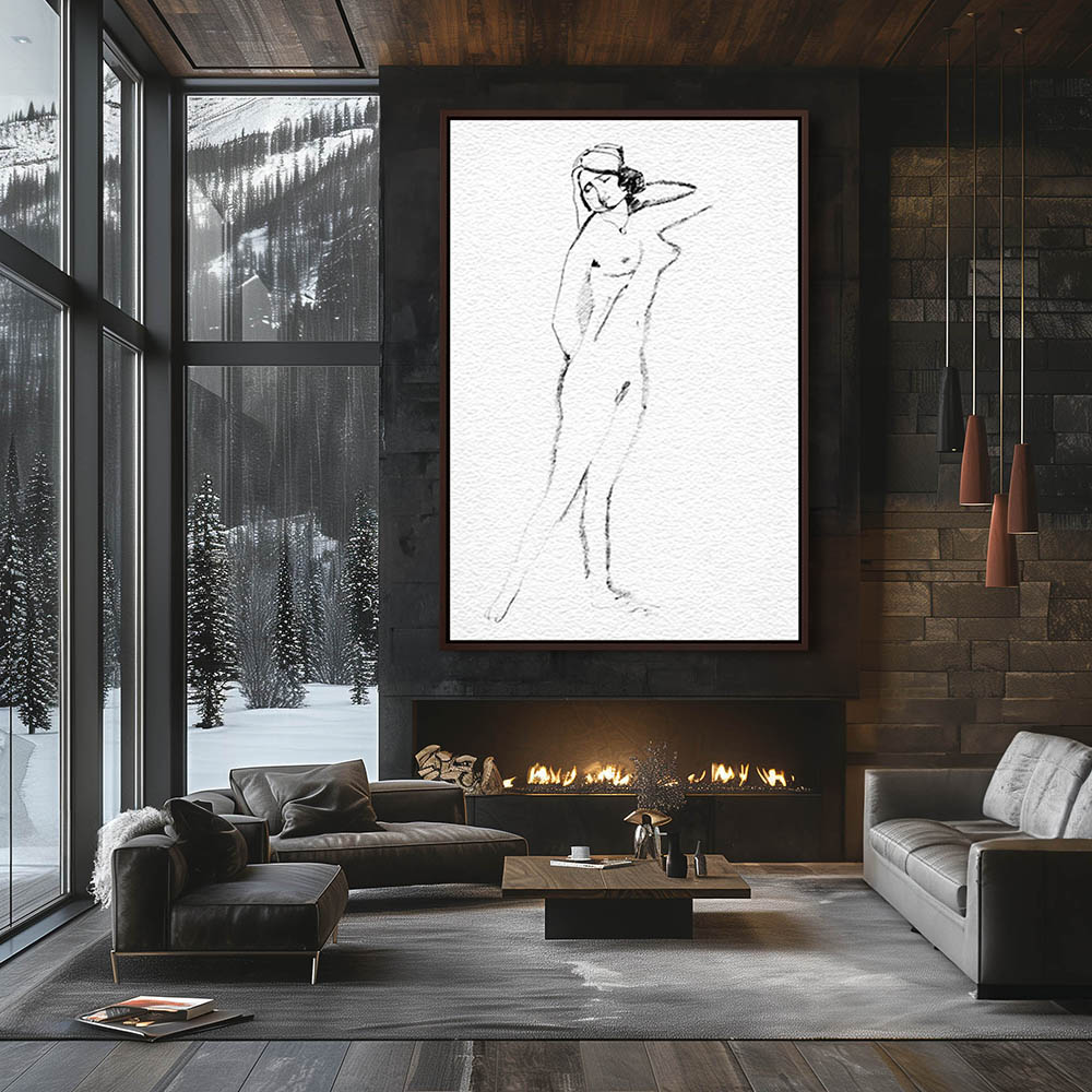 Figurative Drawing of a Standing Woman Nude