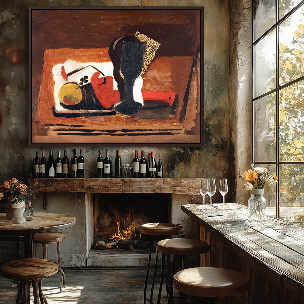 Abstract Still Life Painting with Fruit and a Wine Glass