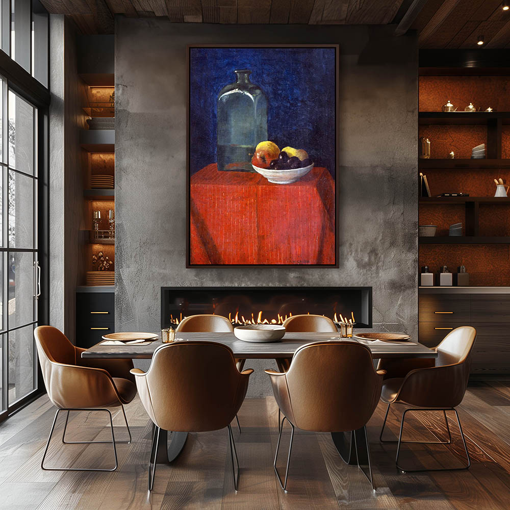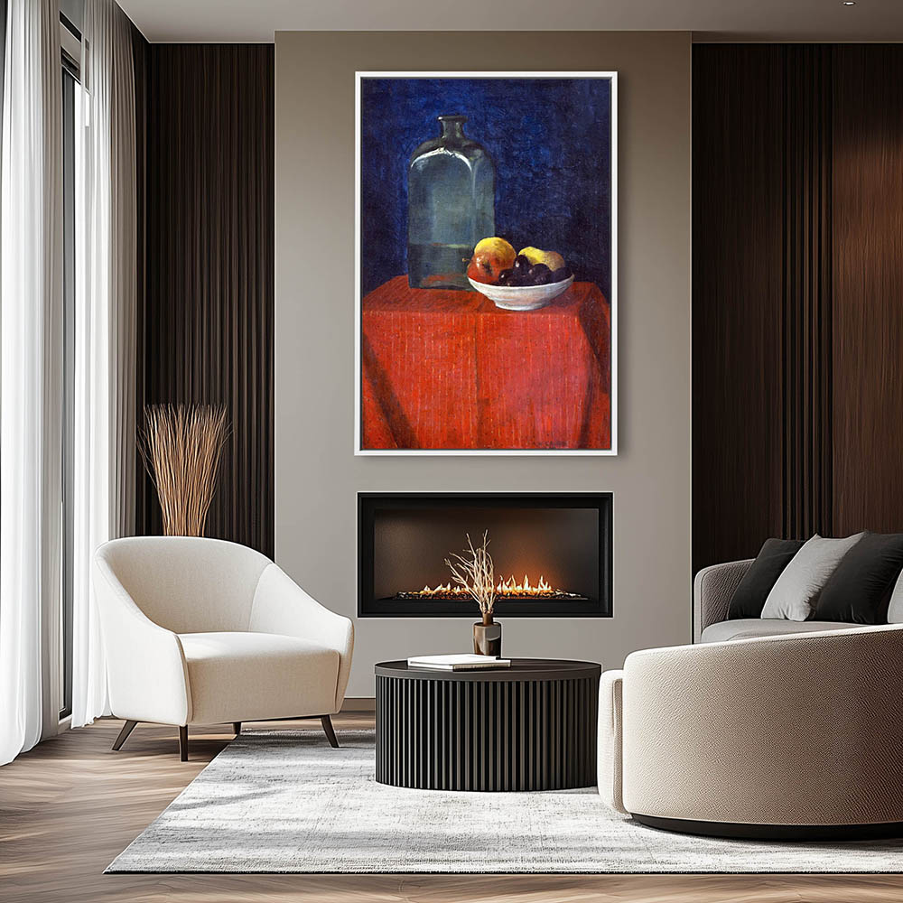 Still Life Painting with a Bottle and Bowl of Fruit