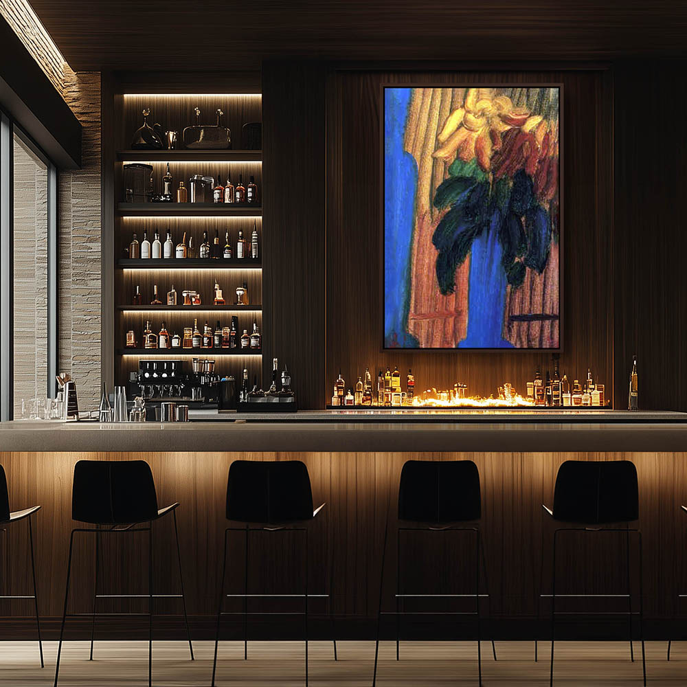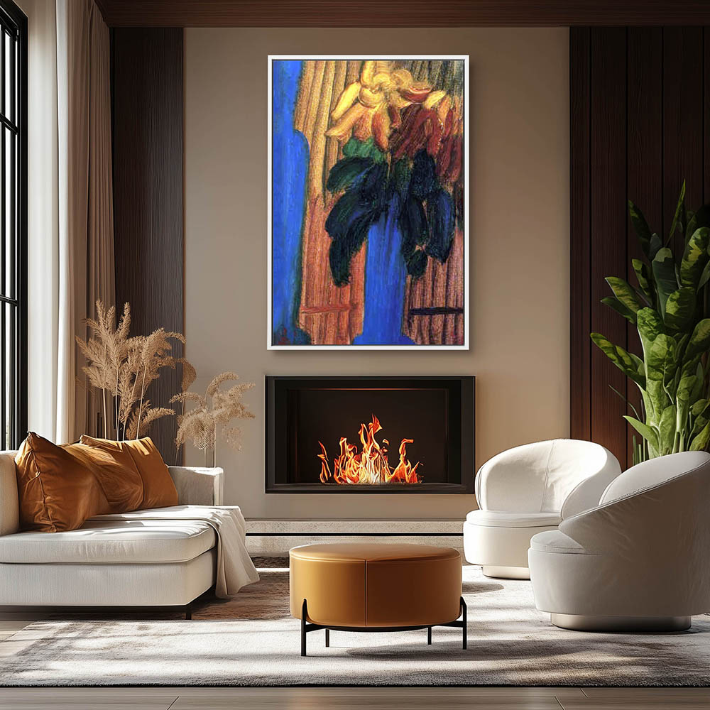 Abstract Still Life Painting with Flowers in a Blue Vase