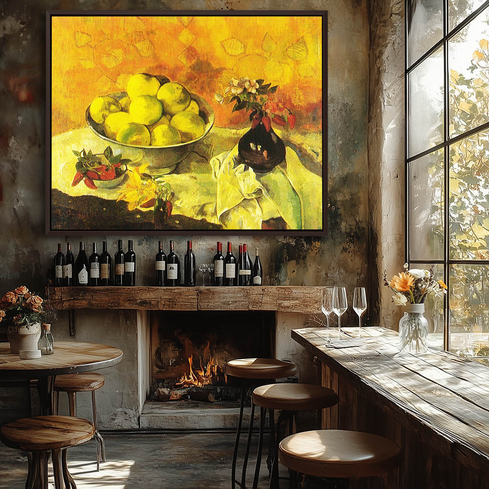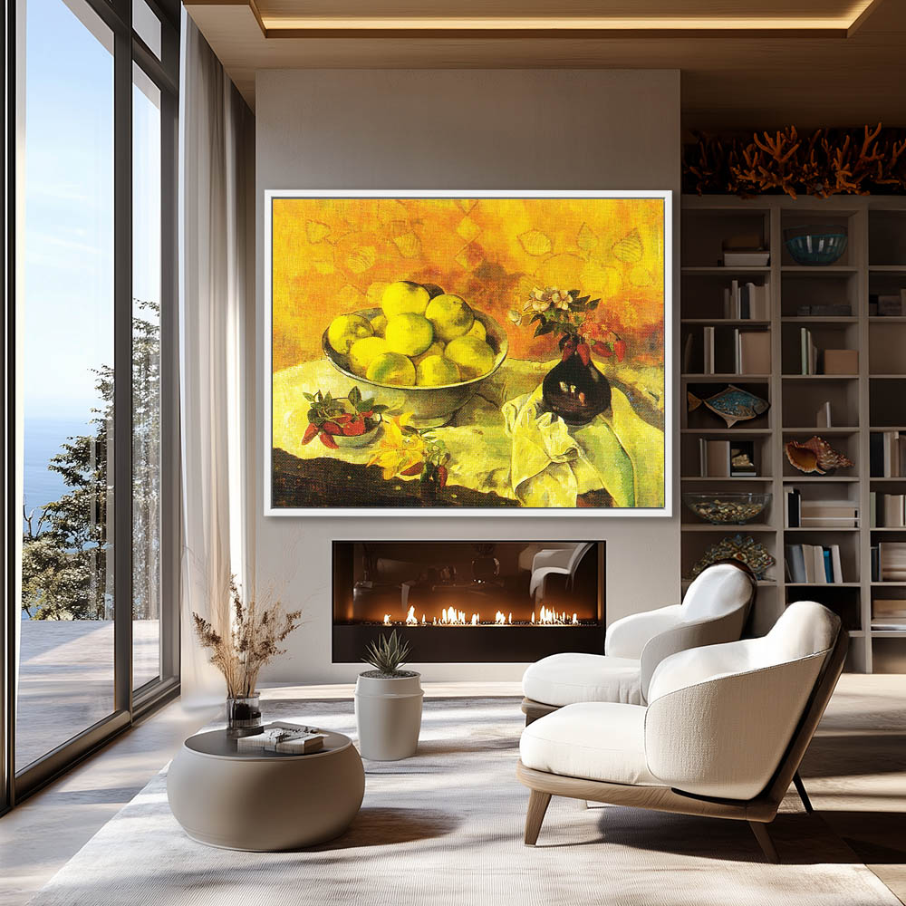 Still Life with A bowl of Grapefruits and a vase of flowers
