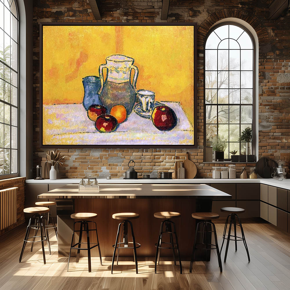 Abstract Still Life Painting with Jug Pitcher Cup and Apples