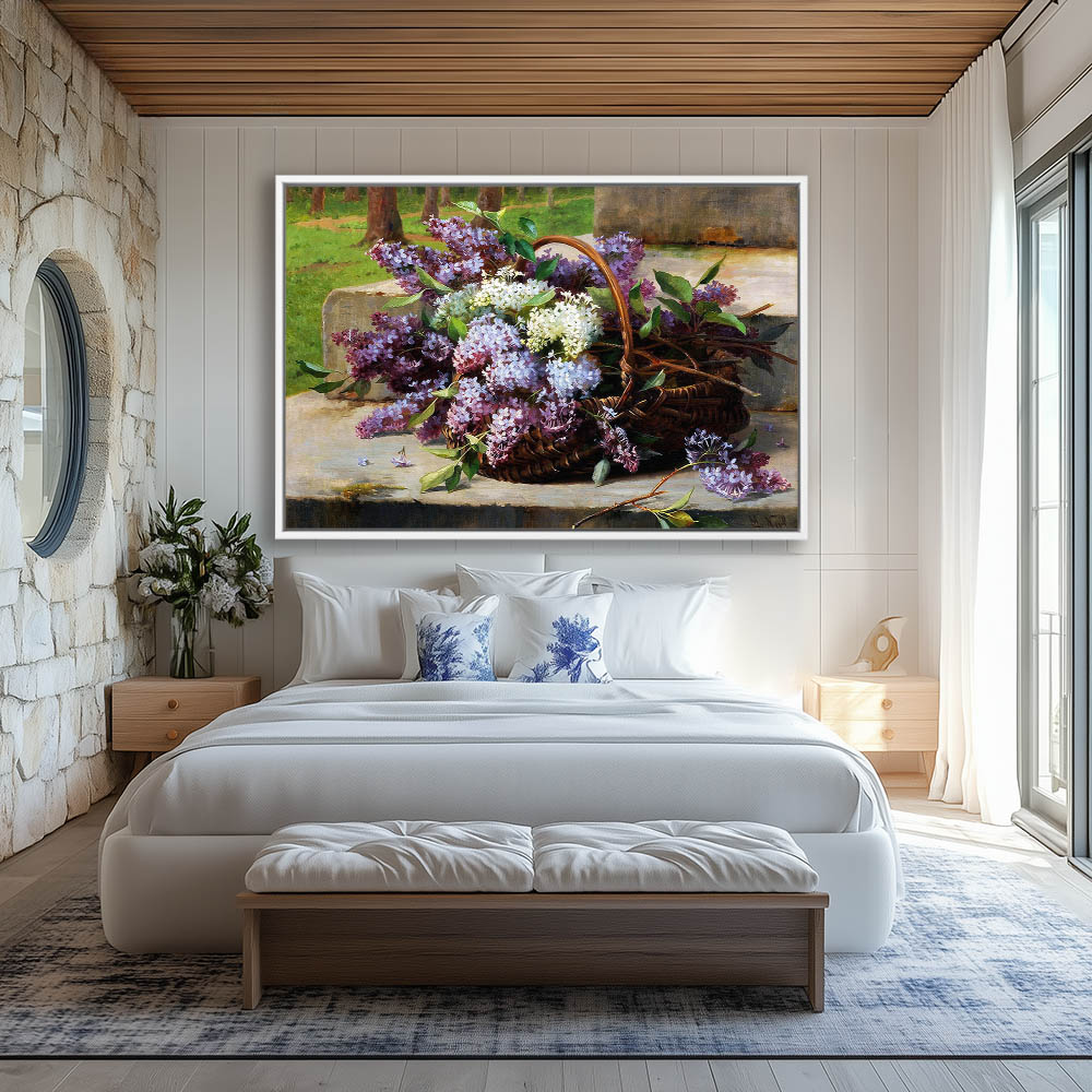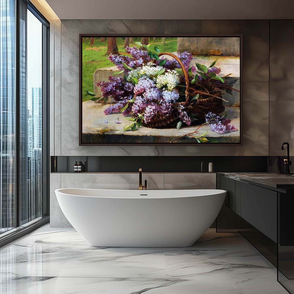 Still Life Flower Painting with Lilacs in a Basket