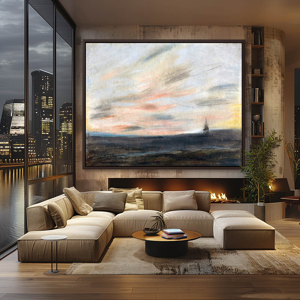 VintageLandscape Painting with a the Sky at Sunset