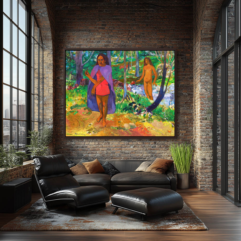 Vintage Figurative Landscape with Two Figures and One Nude