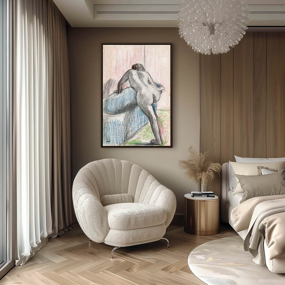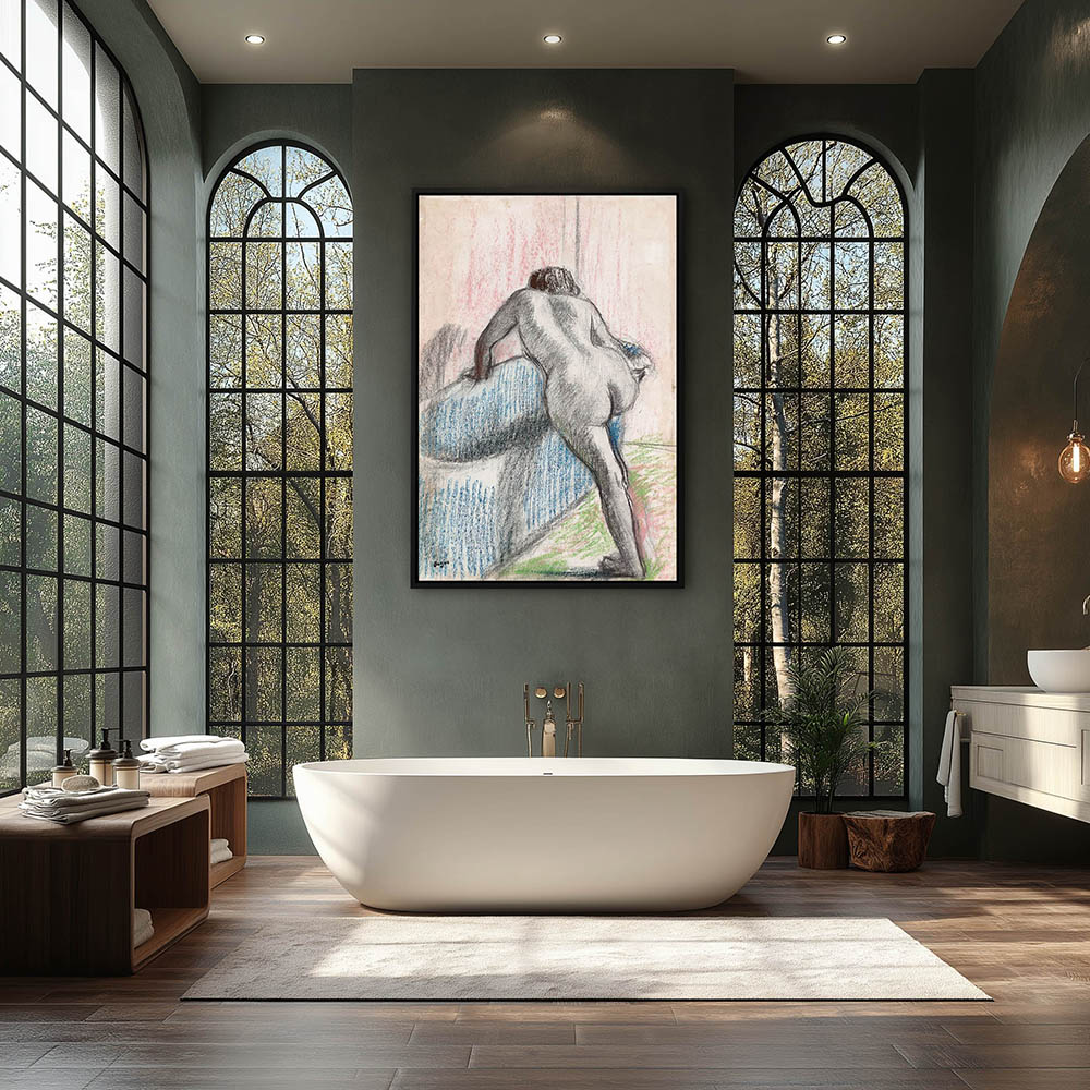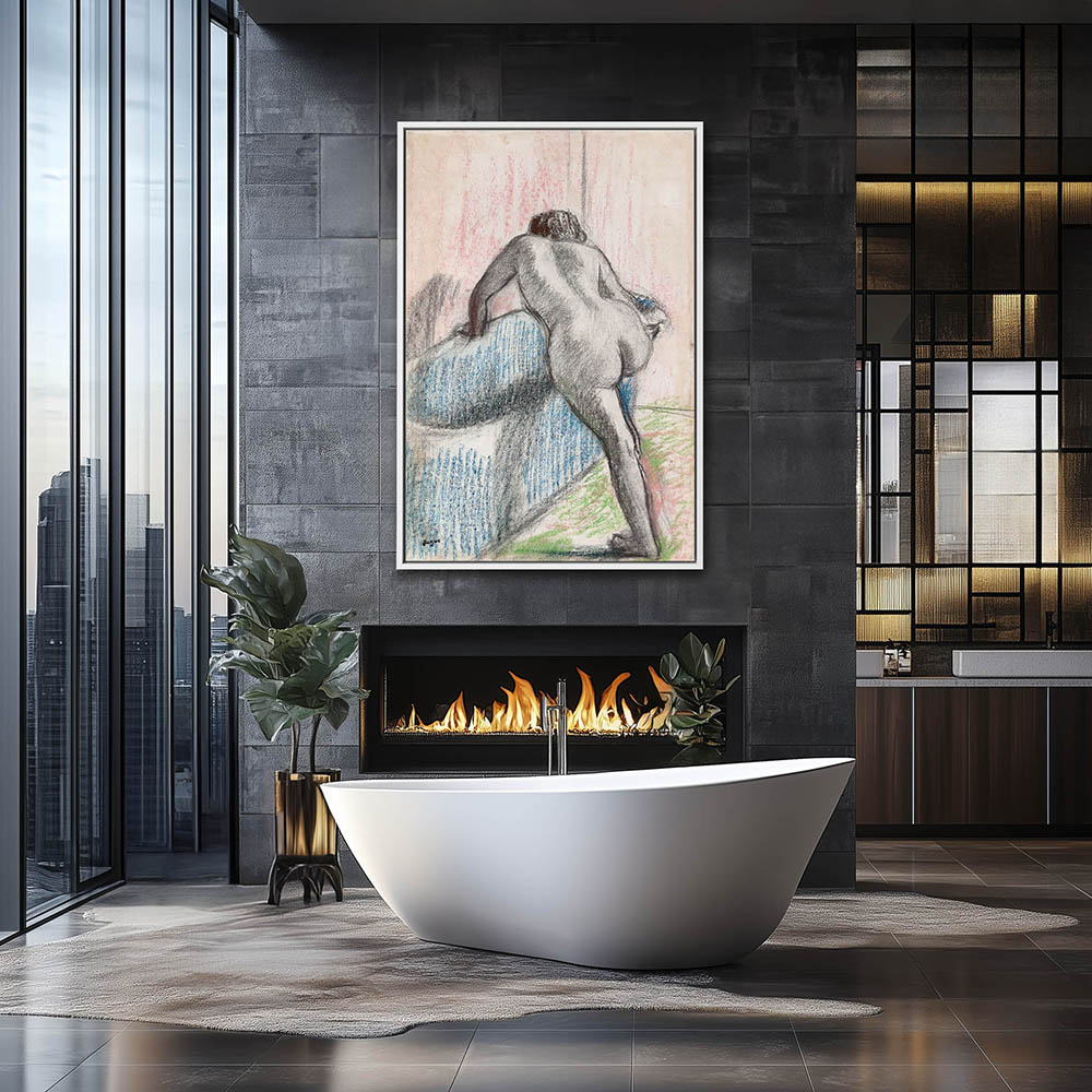 Nude stepping into a bath