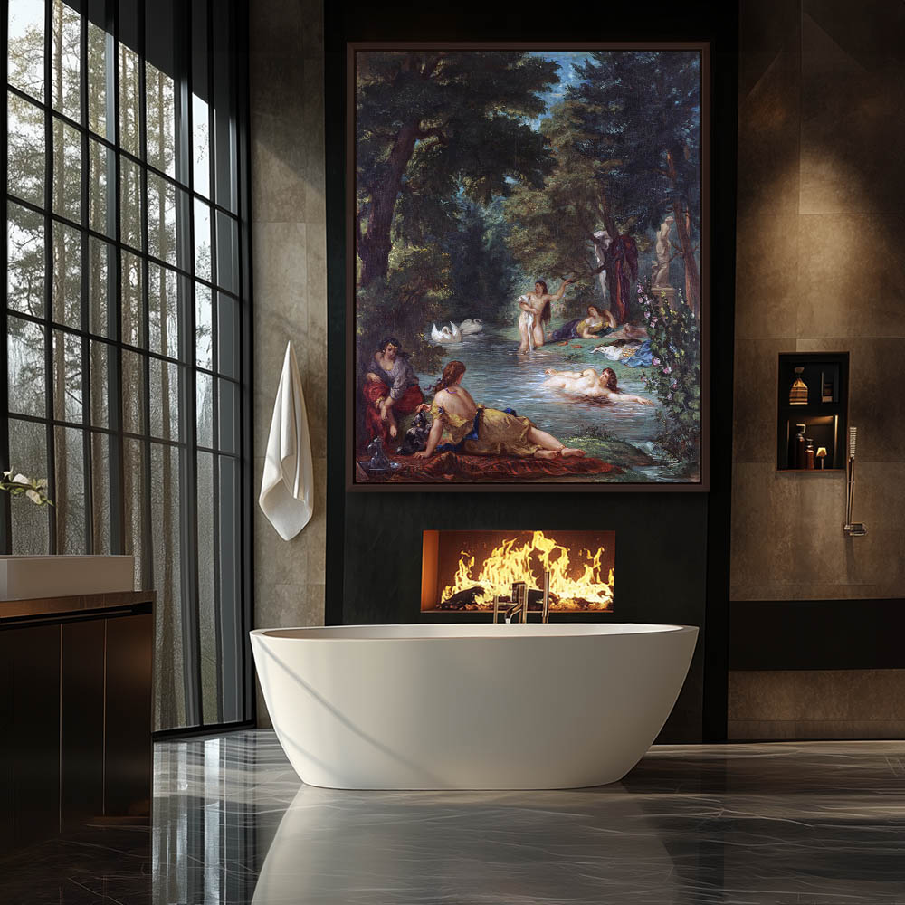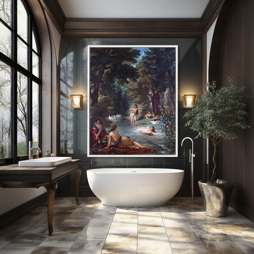 Vintage Figurative Painting with Nude Bathers