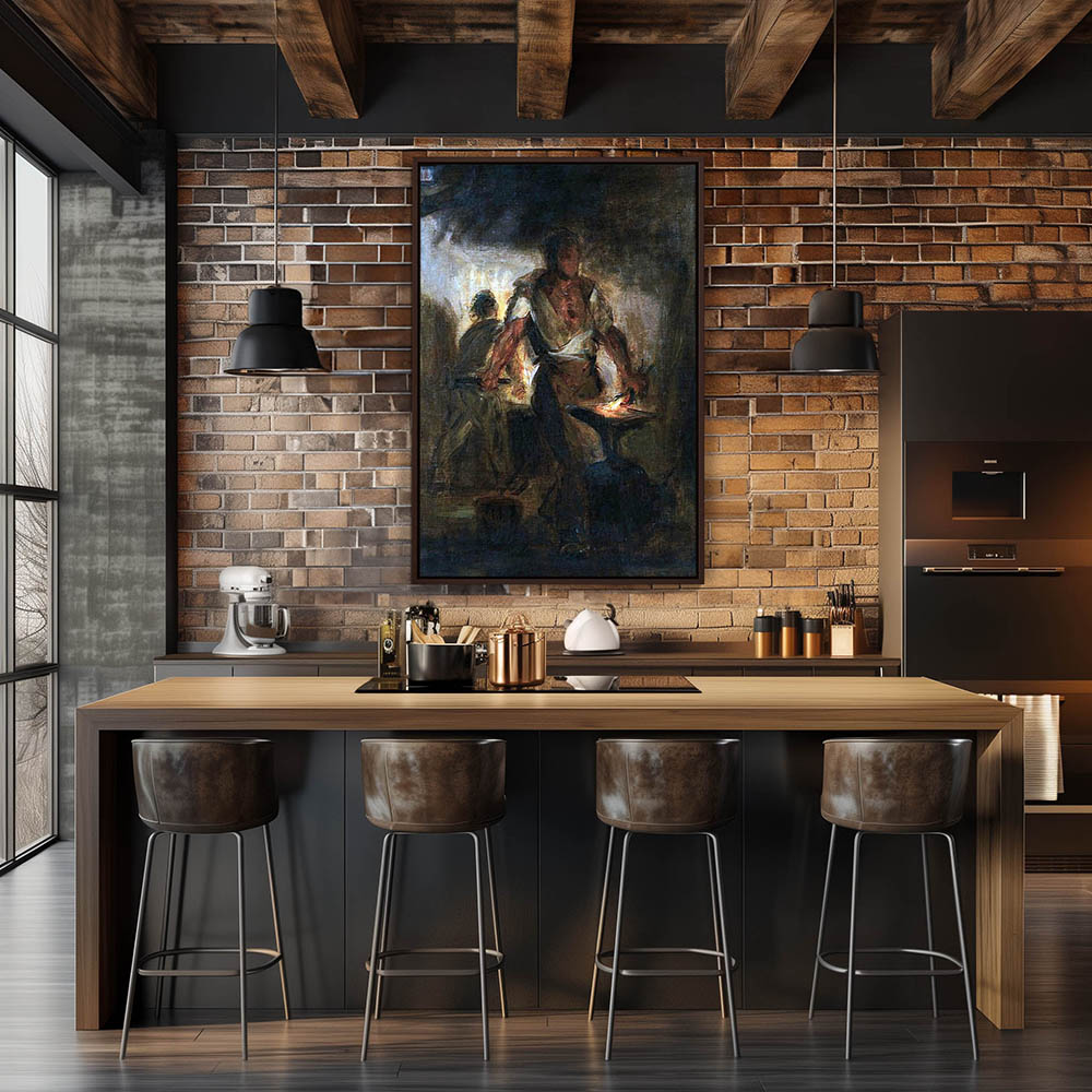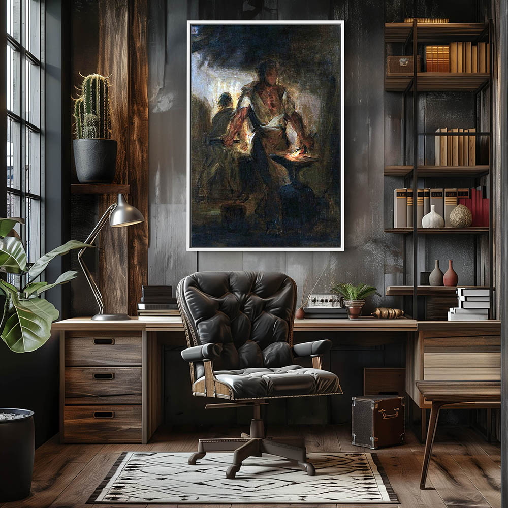 Vintage Figurative Painting of a Blacksmith at Work