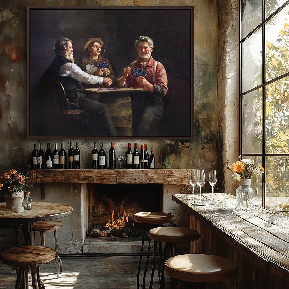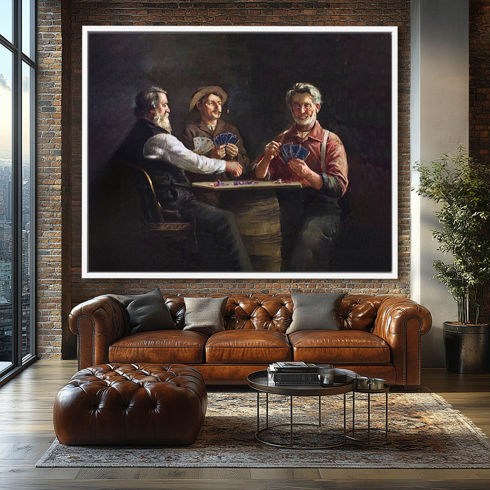 Vintage Figurative Painting with Three Men Playing Cards