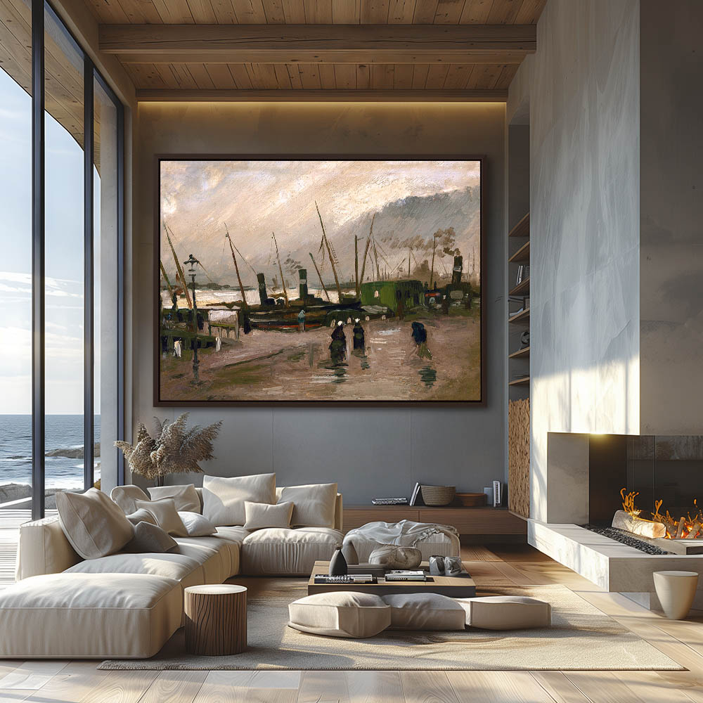 Impressionist Marine Harbor with Figures on the Dock