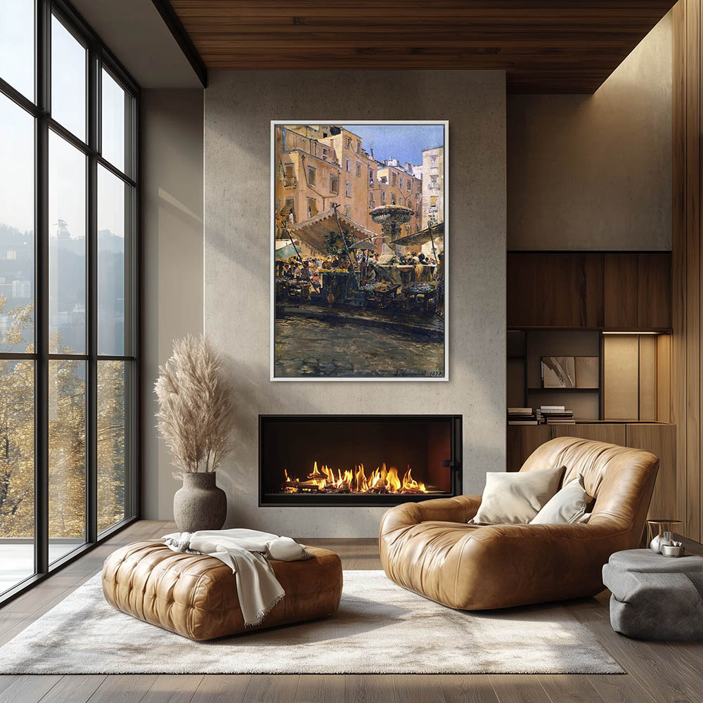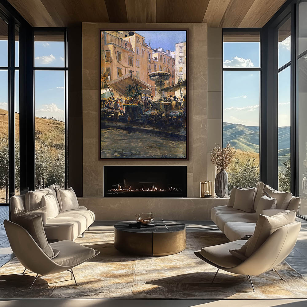 City Painting of The Fountain of Spells in the Basso Porto District of Naples