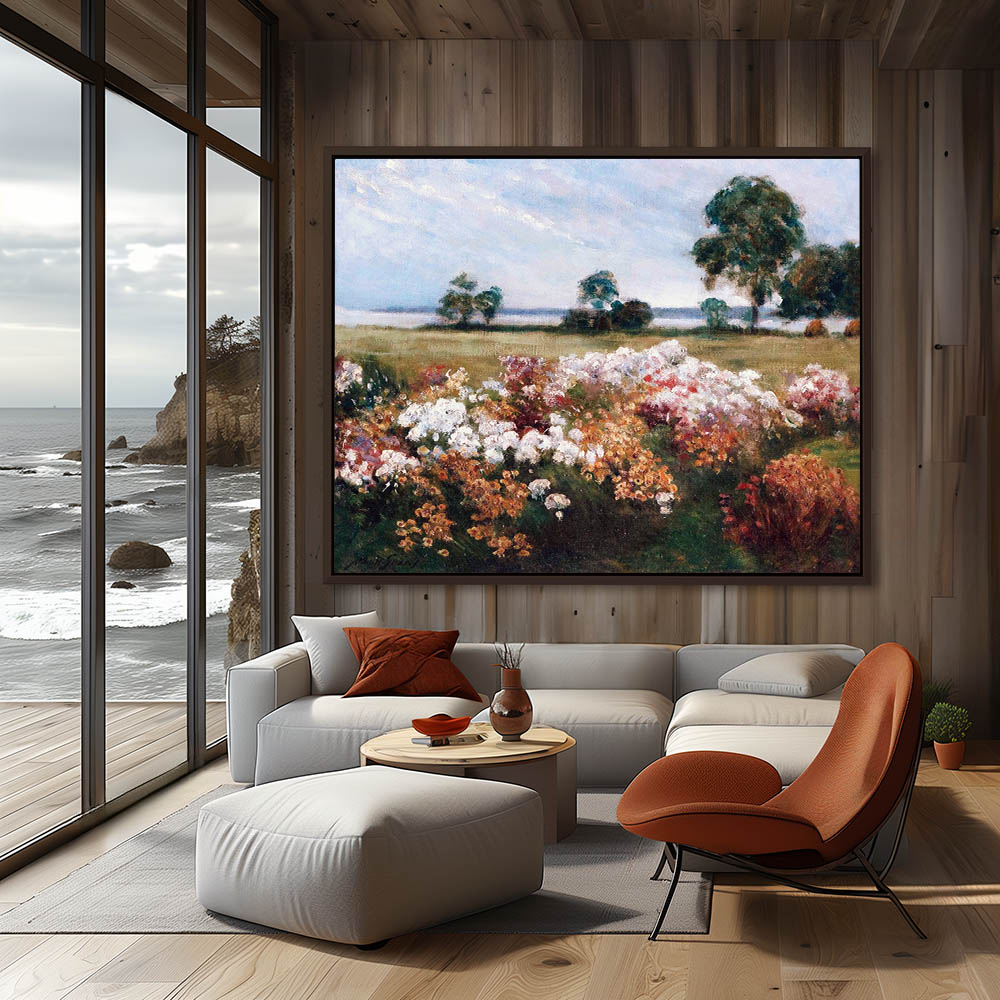 Vintage Flower Painting of the Garden on the Shore