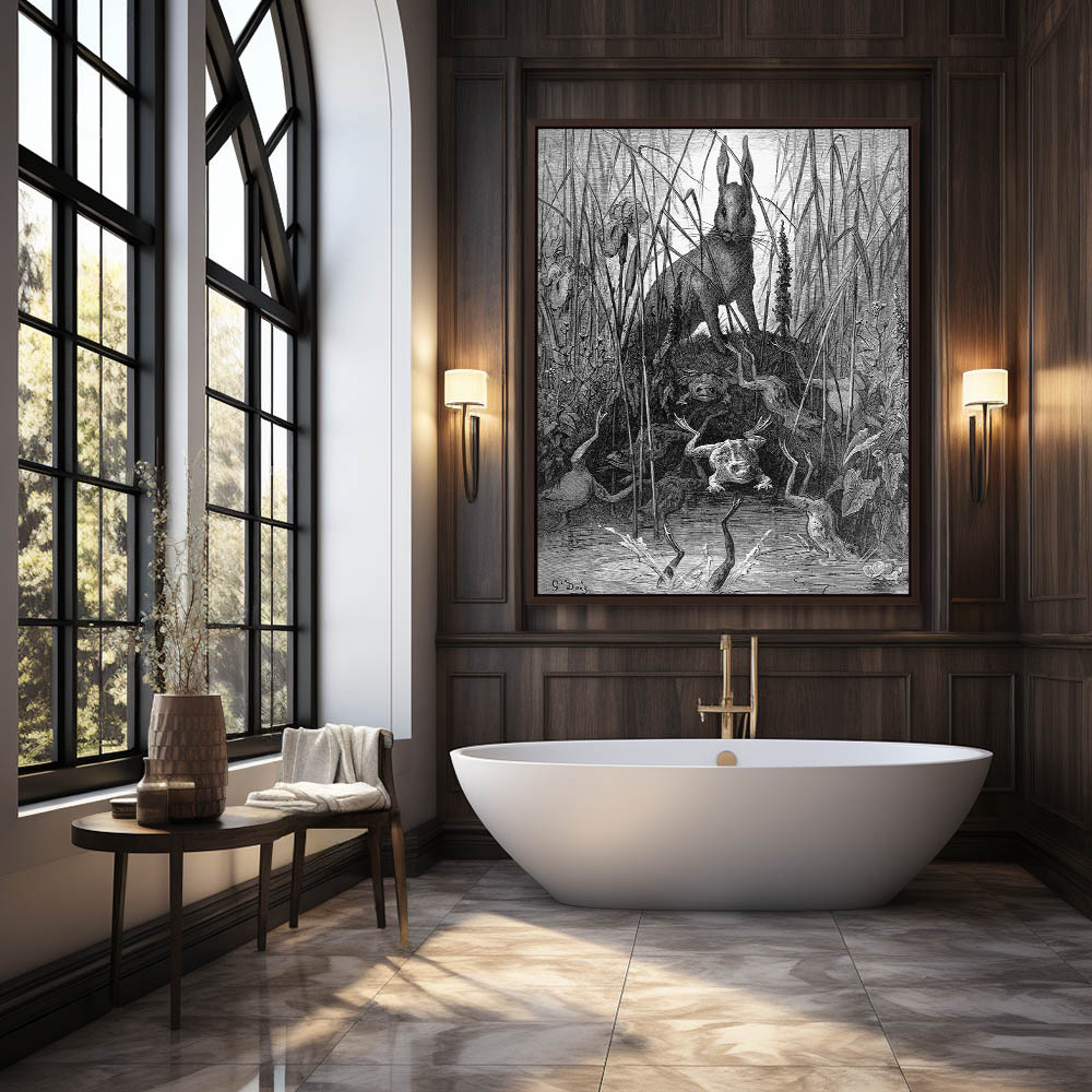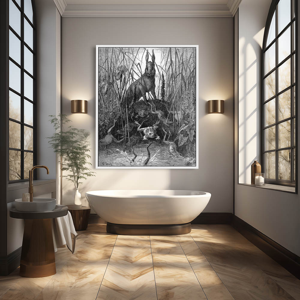 Vintage Etching of The Hare and the Frogs