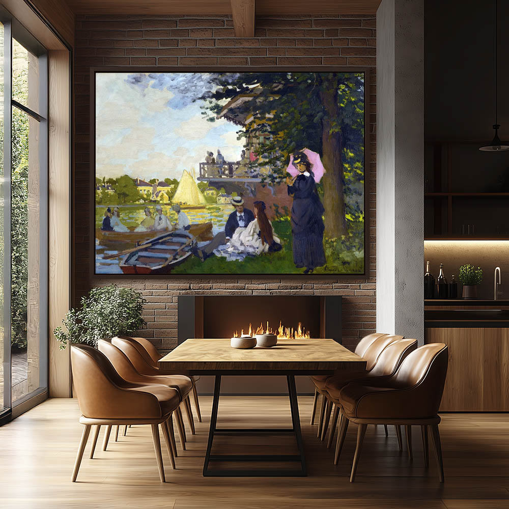 Vintage Painting of a Woman under a Tree on the Bank of the Seine
