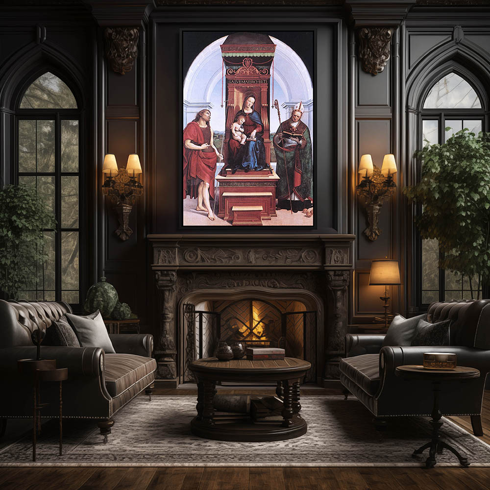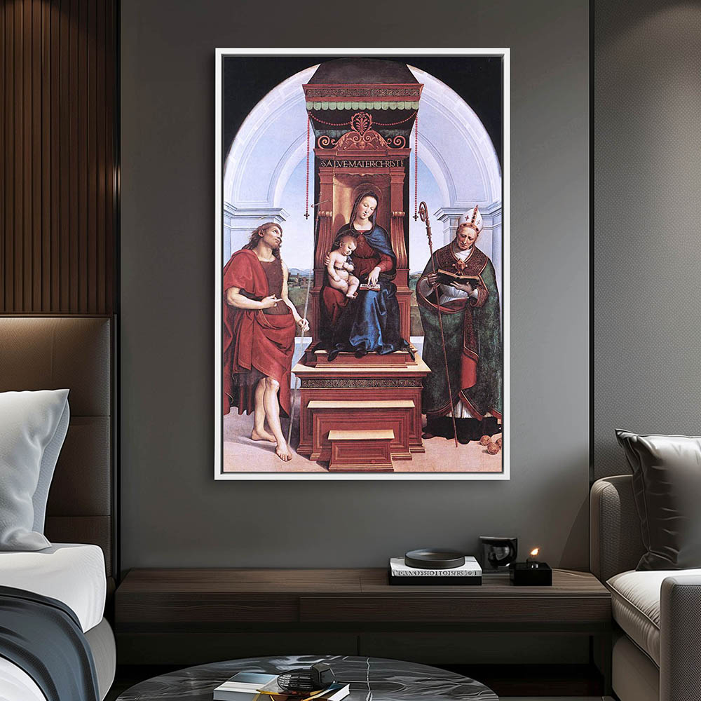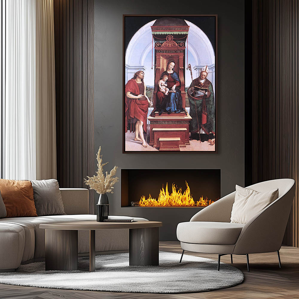 Vintage Religious Painting of The Virgin and Child and John the Baptist