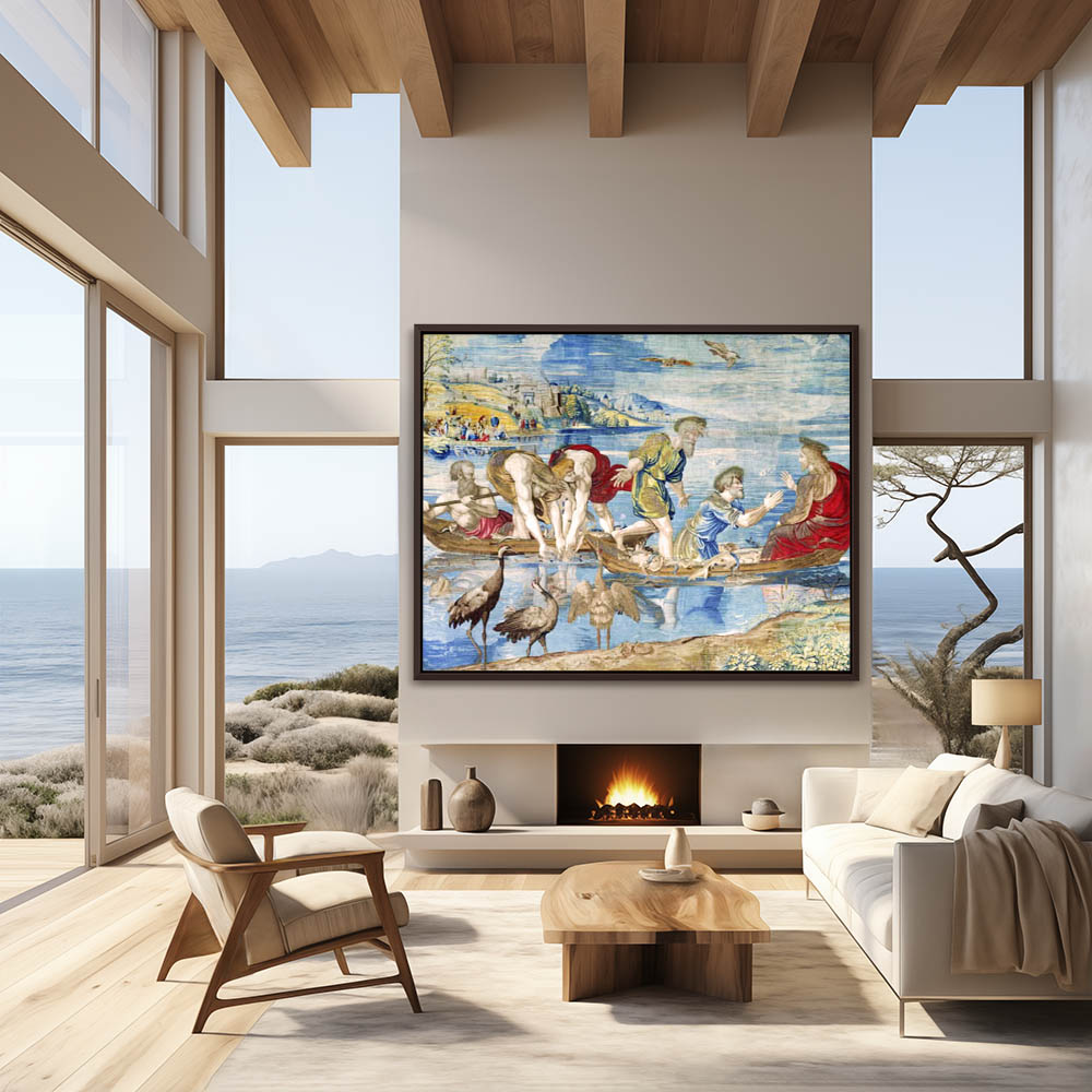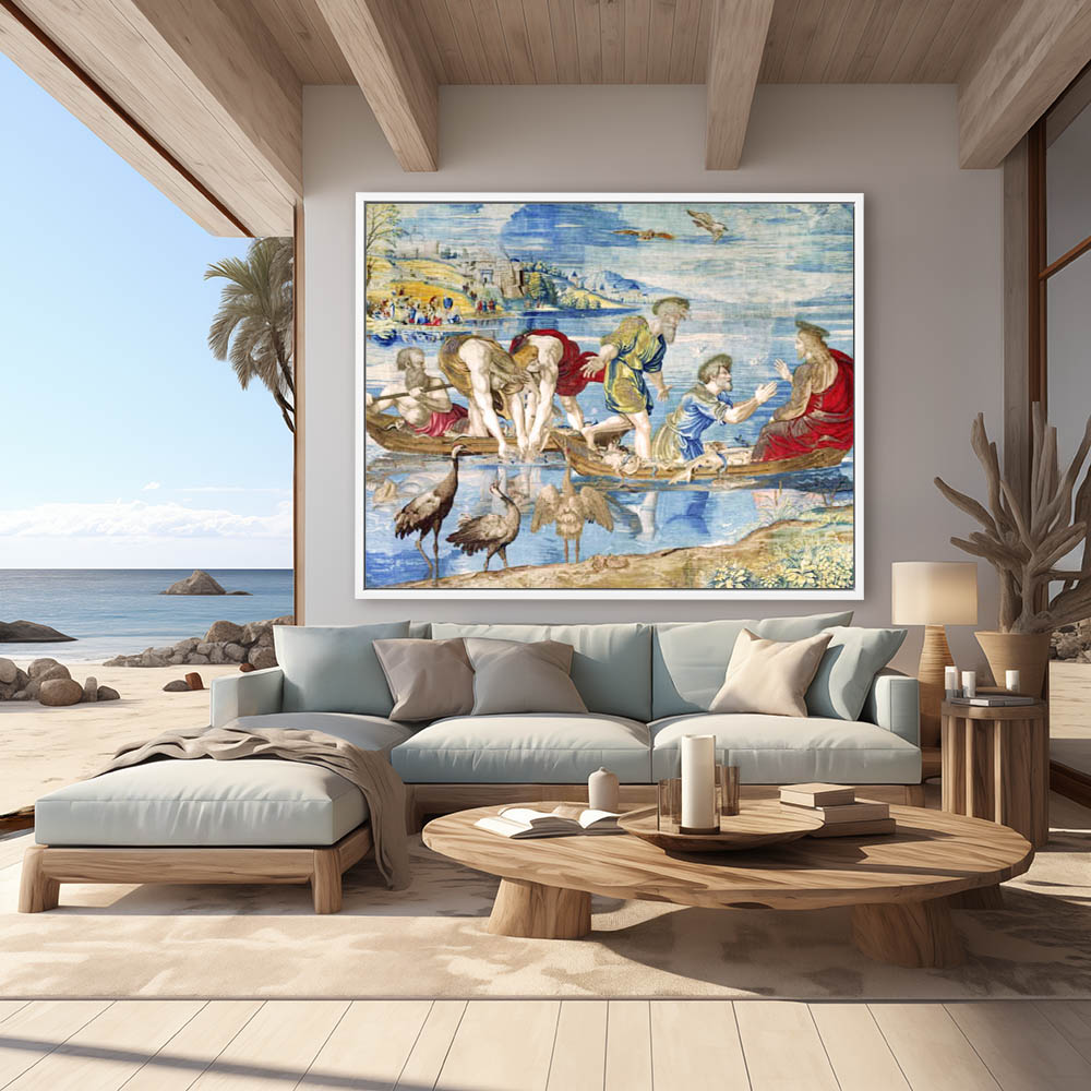 Vintage Religious Painting of Jesus Christ with the Fishermen