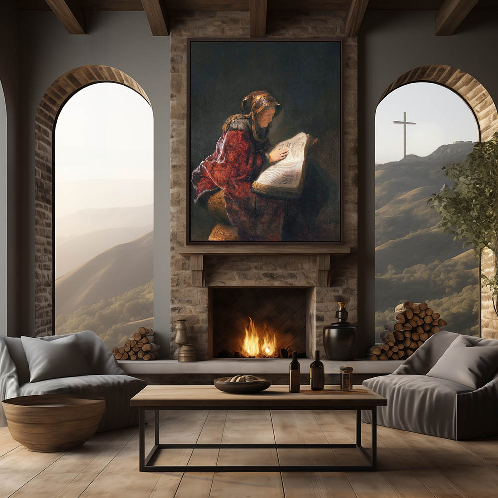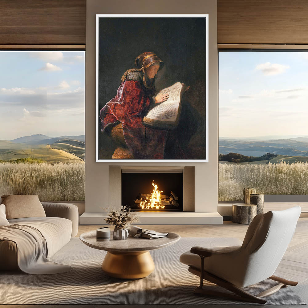 Realism Vintage Painting of the Artist Mother Reading the Bible