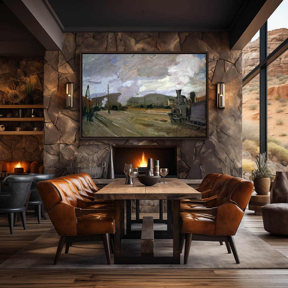 Vintage Industrial Painting with a Railroad Station