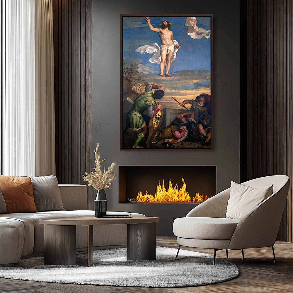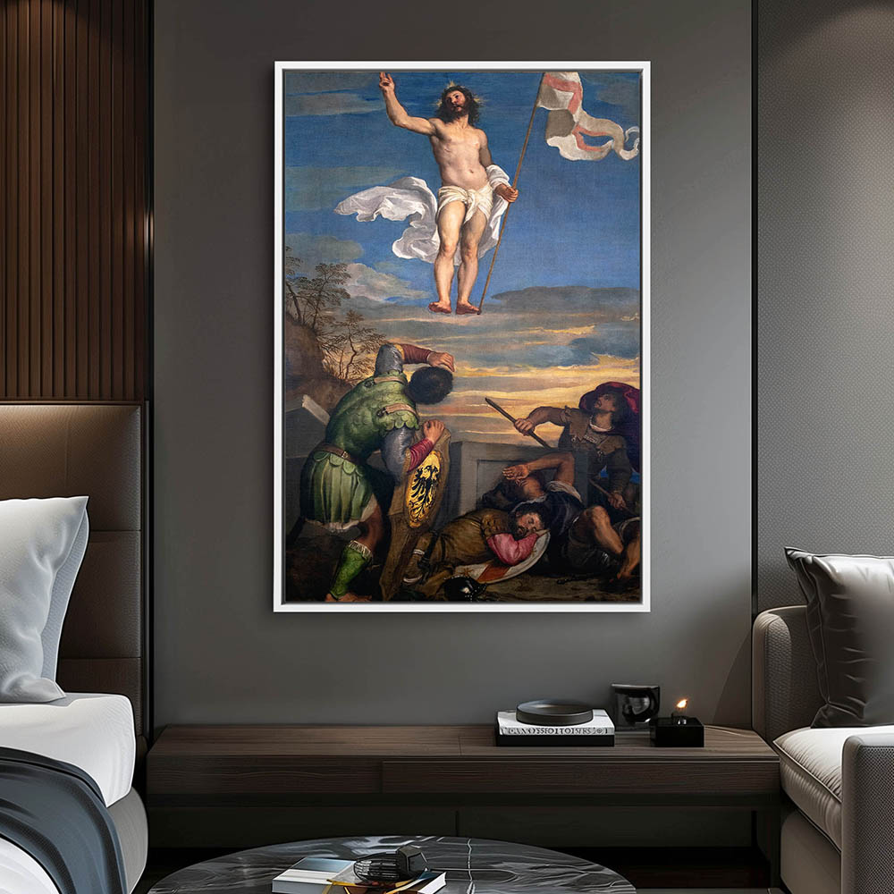 Vintage Religious Painting with Jesus Christ after the Resurrection
