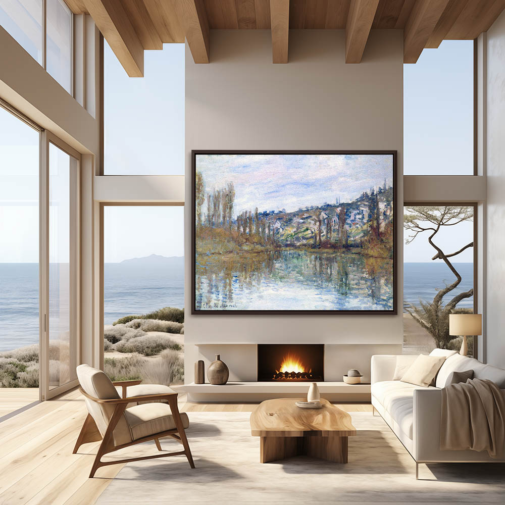 Vintage River Landscape Painting of the River Seine near Vetheuil