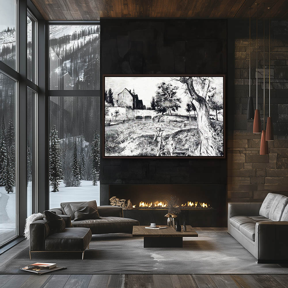 Landscape Drawing with Buildings and Figures
