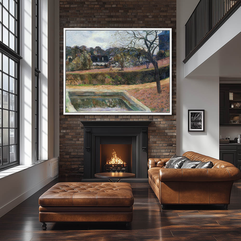 Vintage Landscape Painting of a Swimming pool called the Square Pond