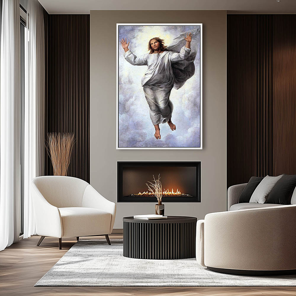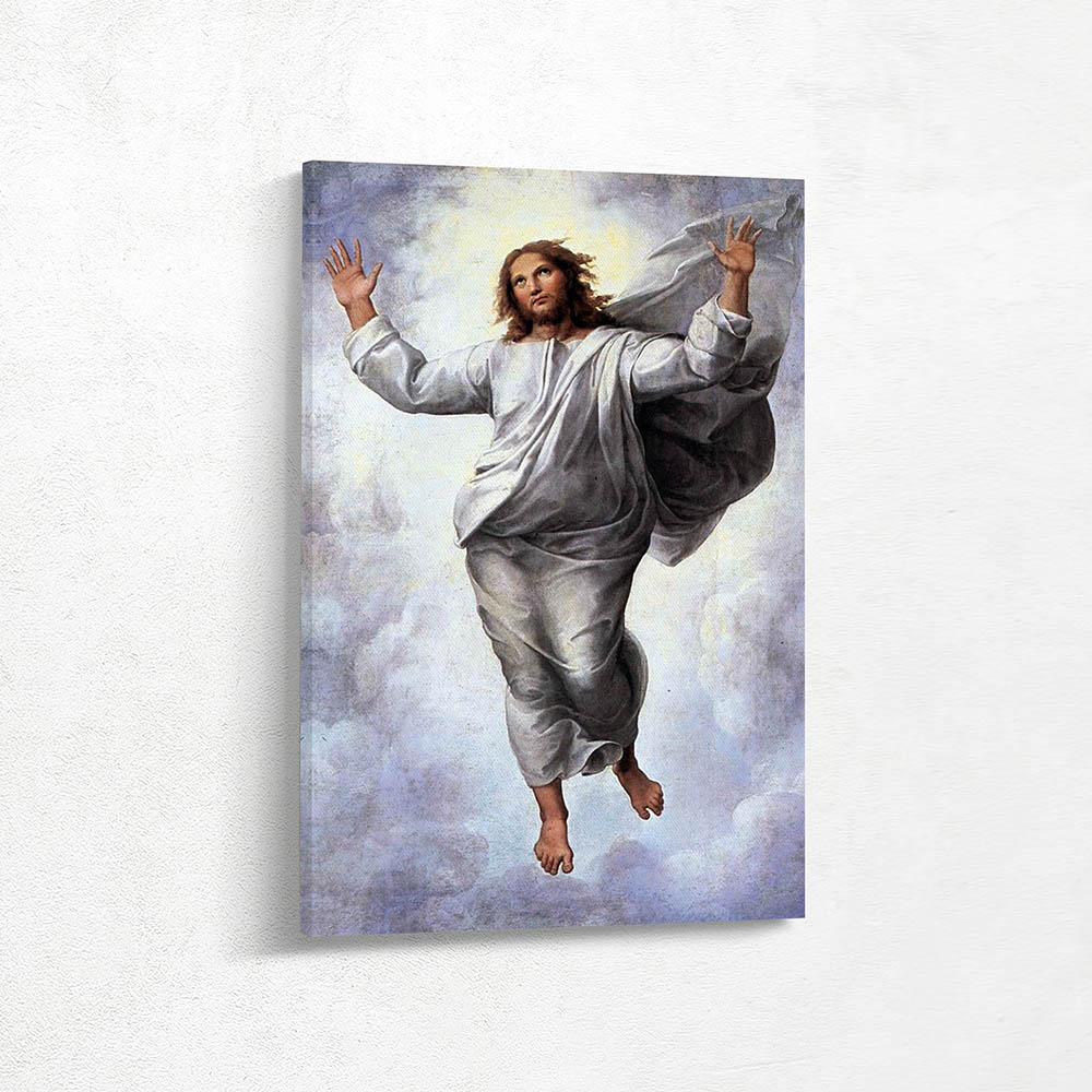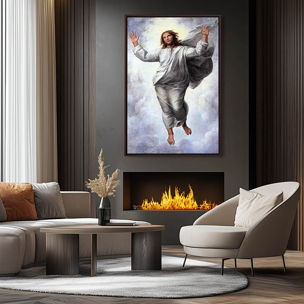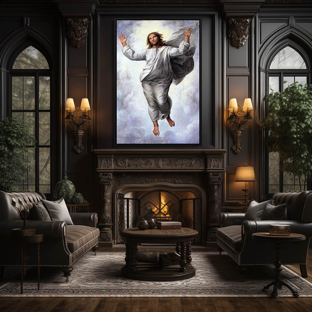 Vintage Religious Painting of Jesus Ascending in the Sky