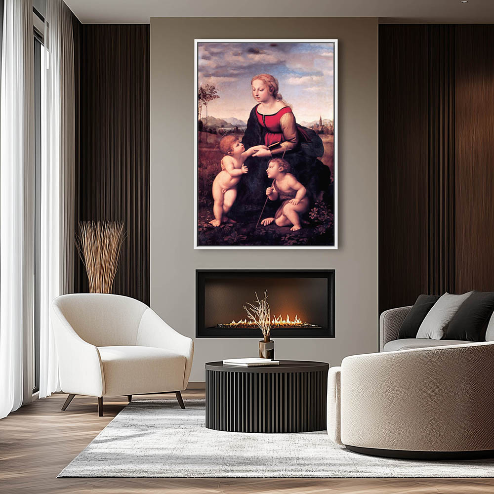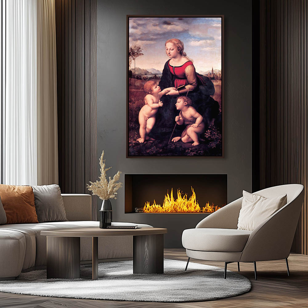 Vintage Religious Painting of The Virgin and Child and John the Baptist