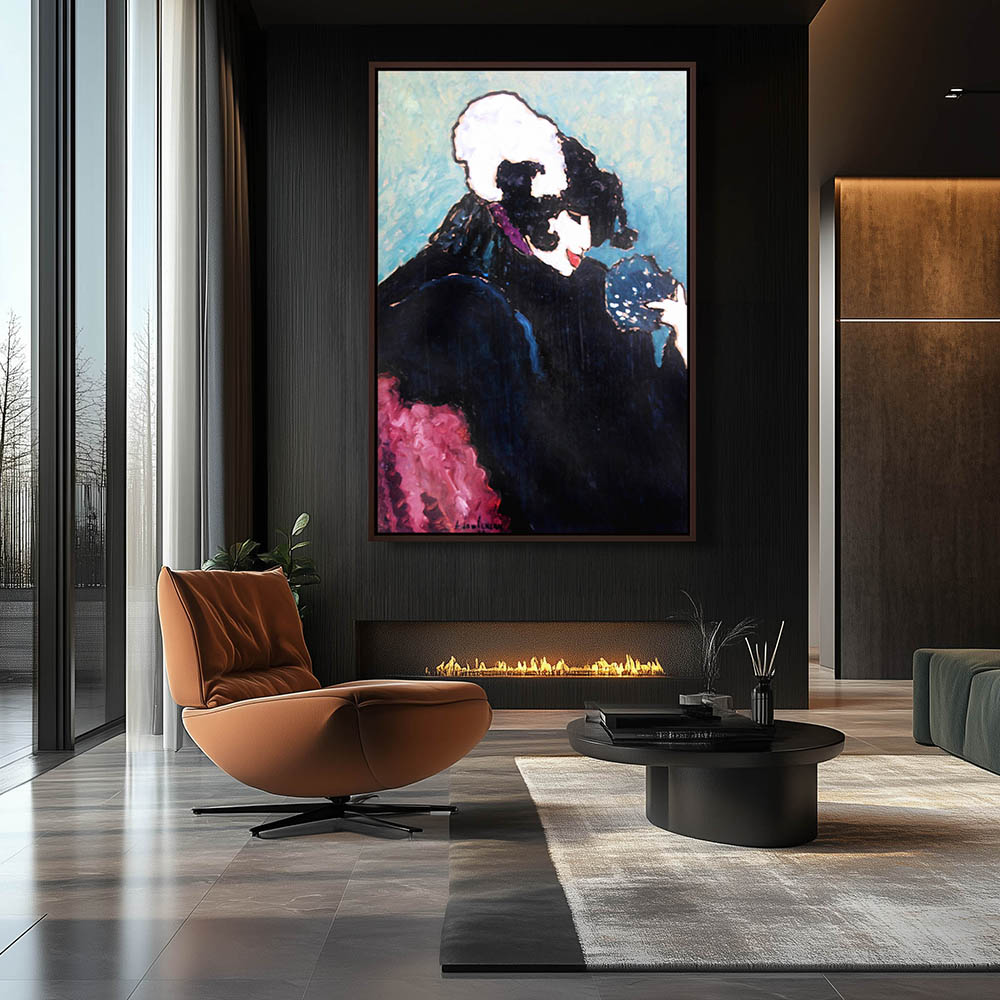 Abstract Figurative of a Woman with Black Coat and White Feather