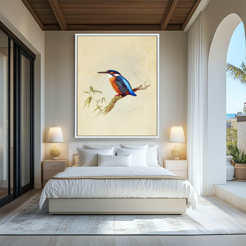 Painting of the Three Toed Kingfisher Bird on a Limb