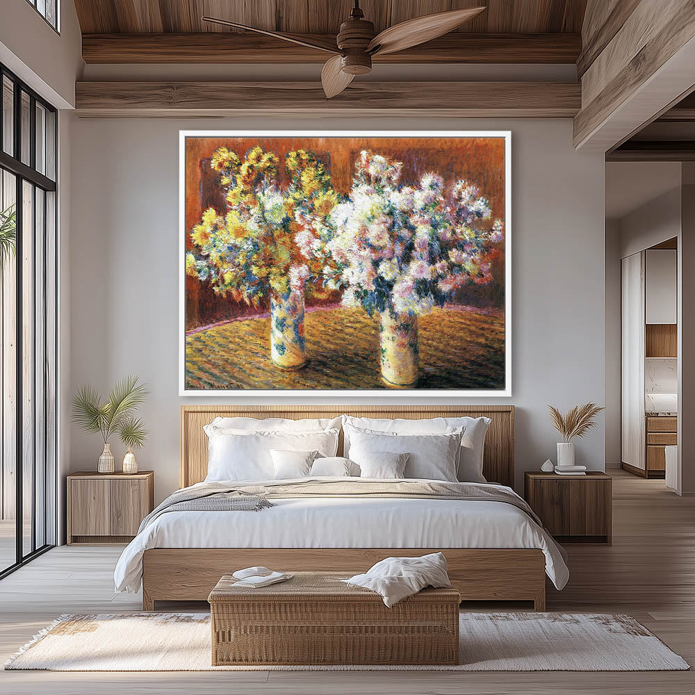 Vintage Still Life Painting of Two Vases of Flowers on a Table