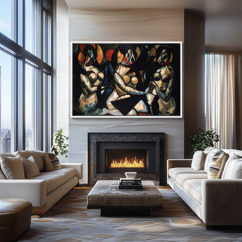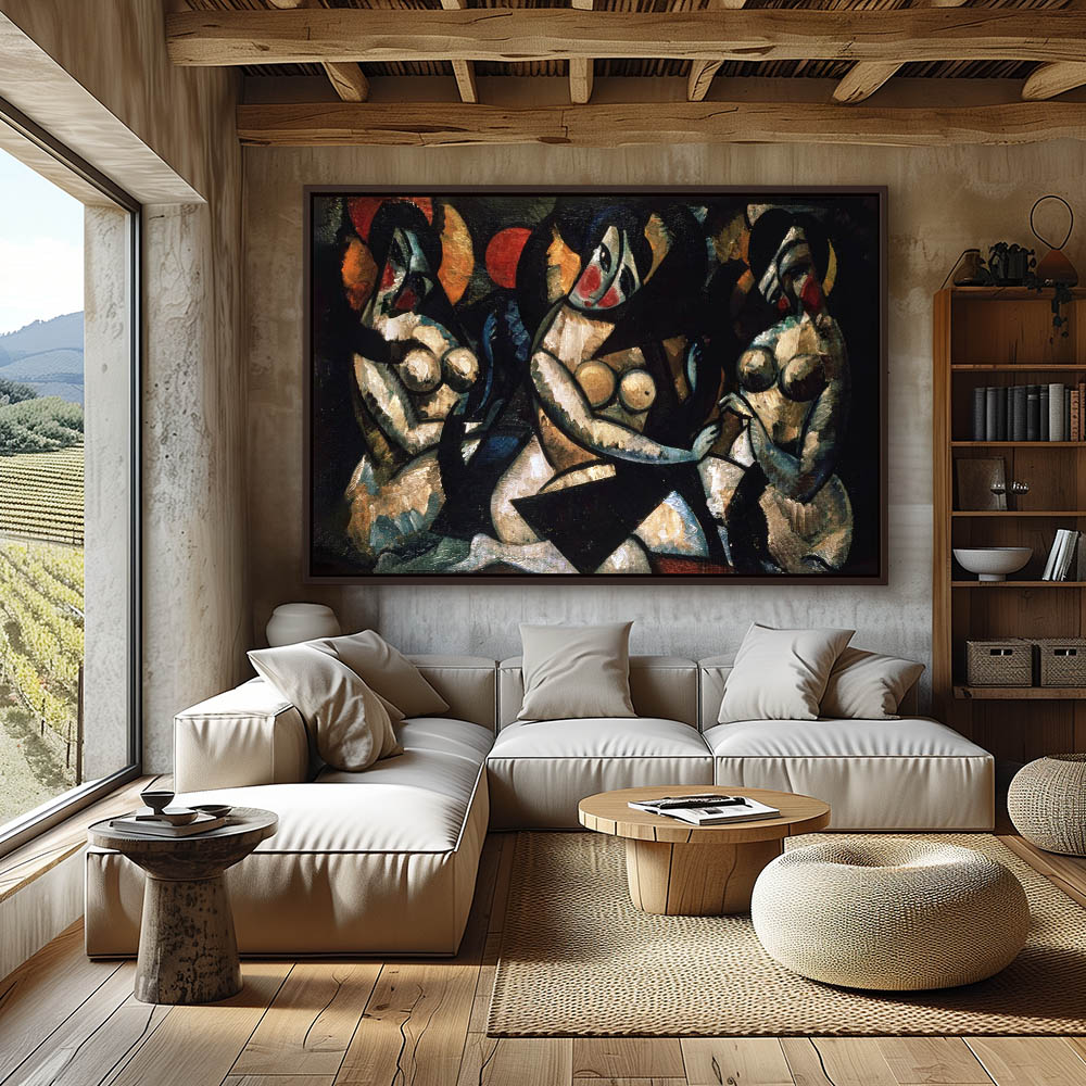 Abstract Painting of Nude Female Figures Uzbek Musicians