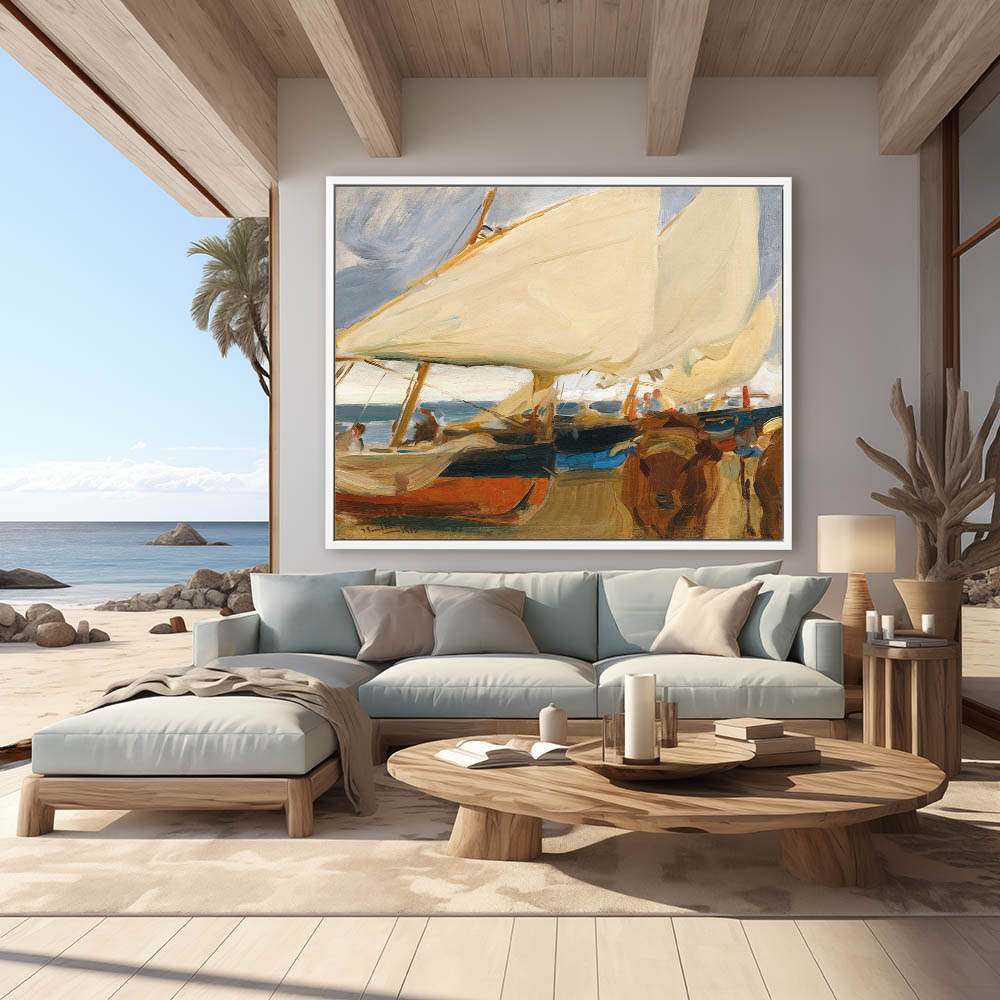 Sailboats and oxen on the beach