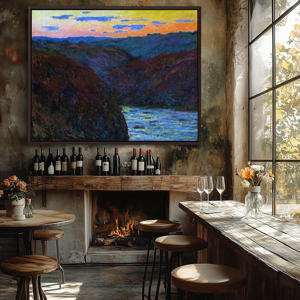 Vintage River Landscape Painting of the Valley of the Creuse at Sunset