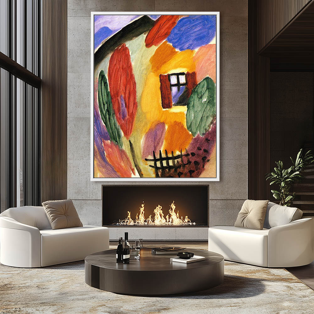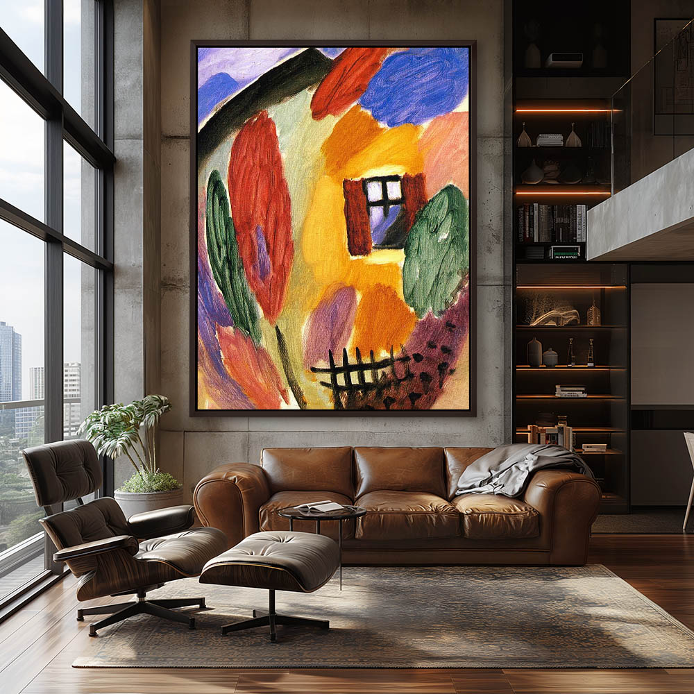 Abstract Landscape Painting with a house and fence