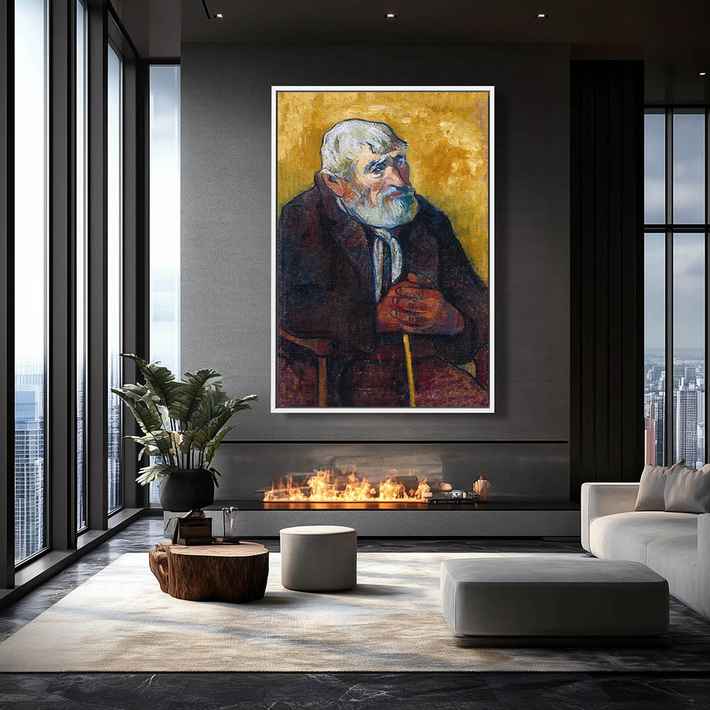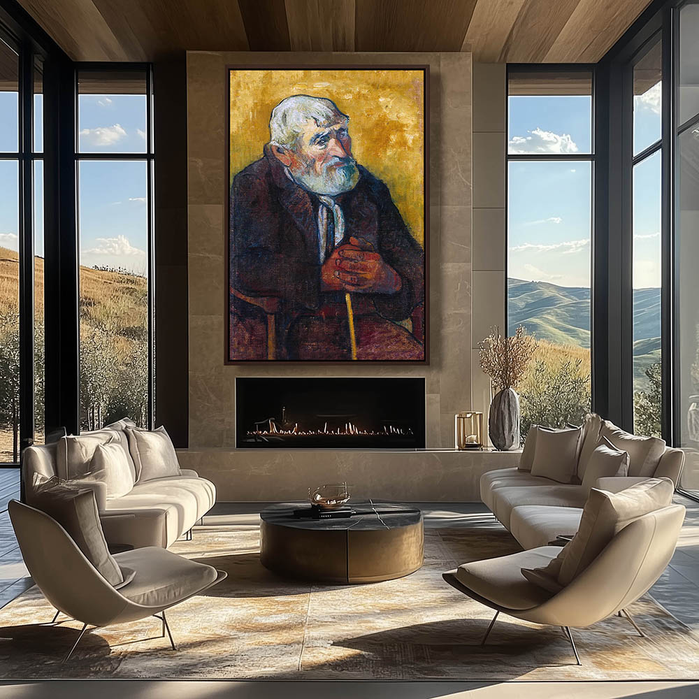 Vintage Portrait Painting of a Man sitting with a Cane