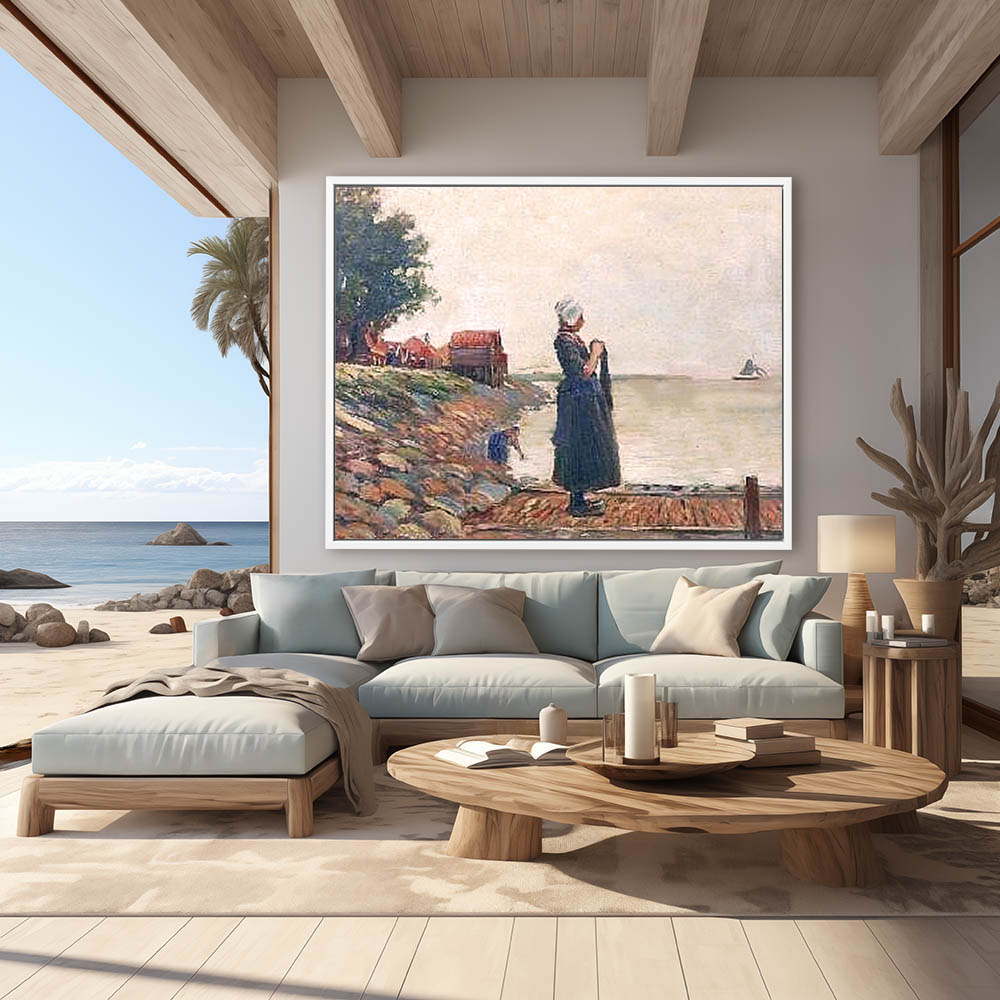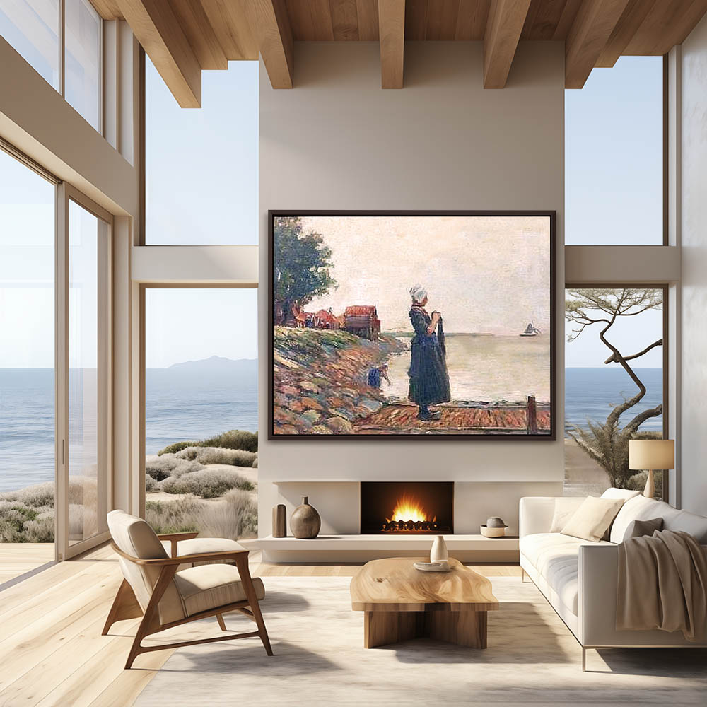 Vintage Figurative Painting of a Woman Awaiting Her Husbands Return